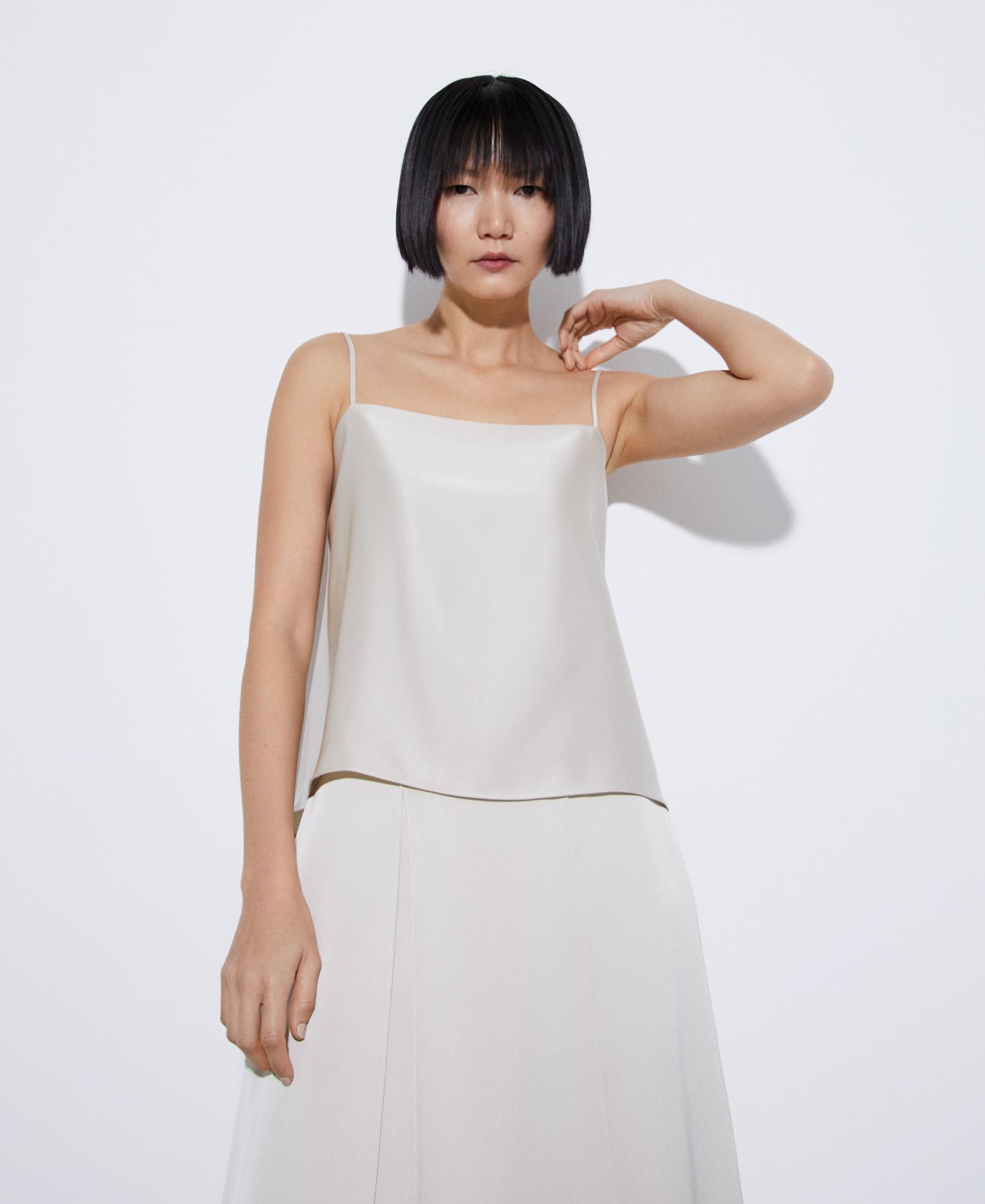 Camisas y tops Adolfo Dominguez | Top tirante fino en poliéster Beige Mujer