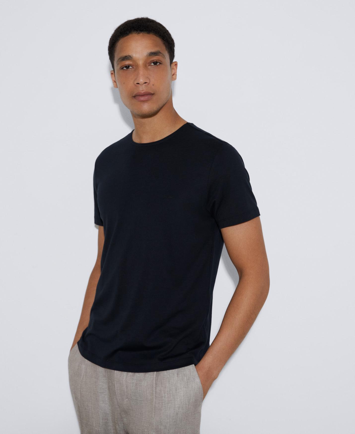 Básicos Adolfo Dominguez | Camiseta cuello caja en lyocell Azulmarino Hombre
