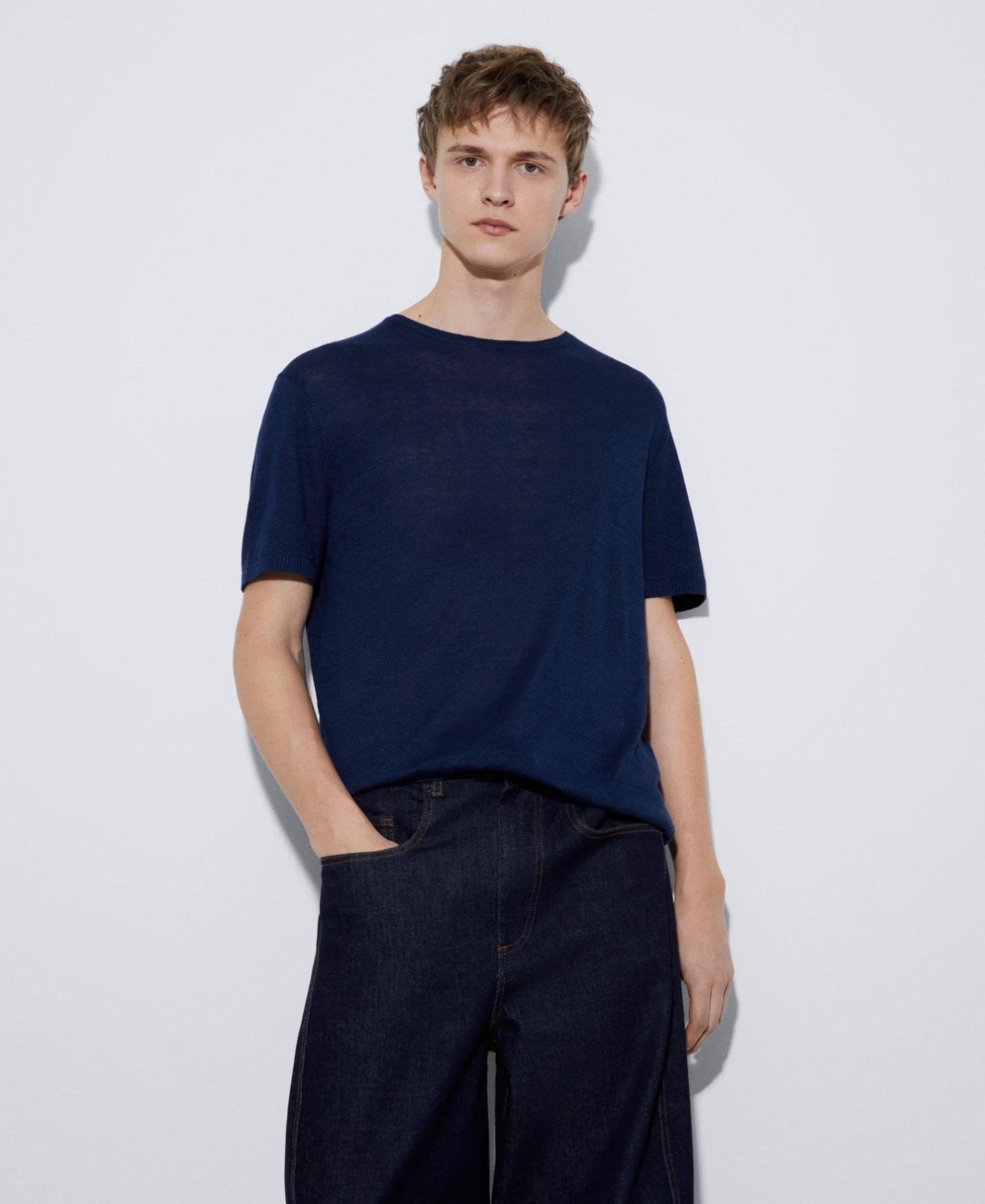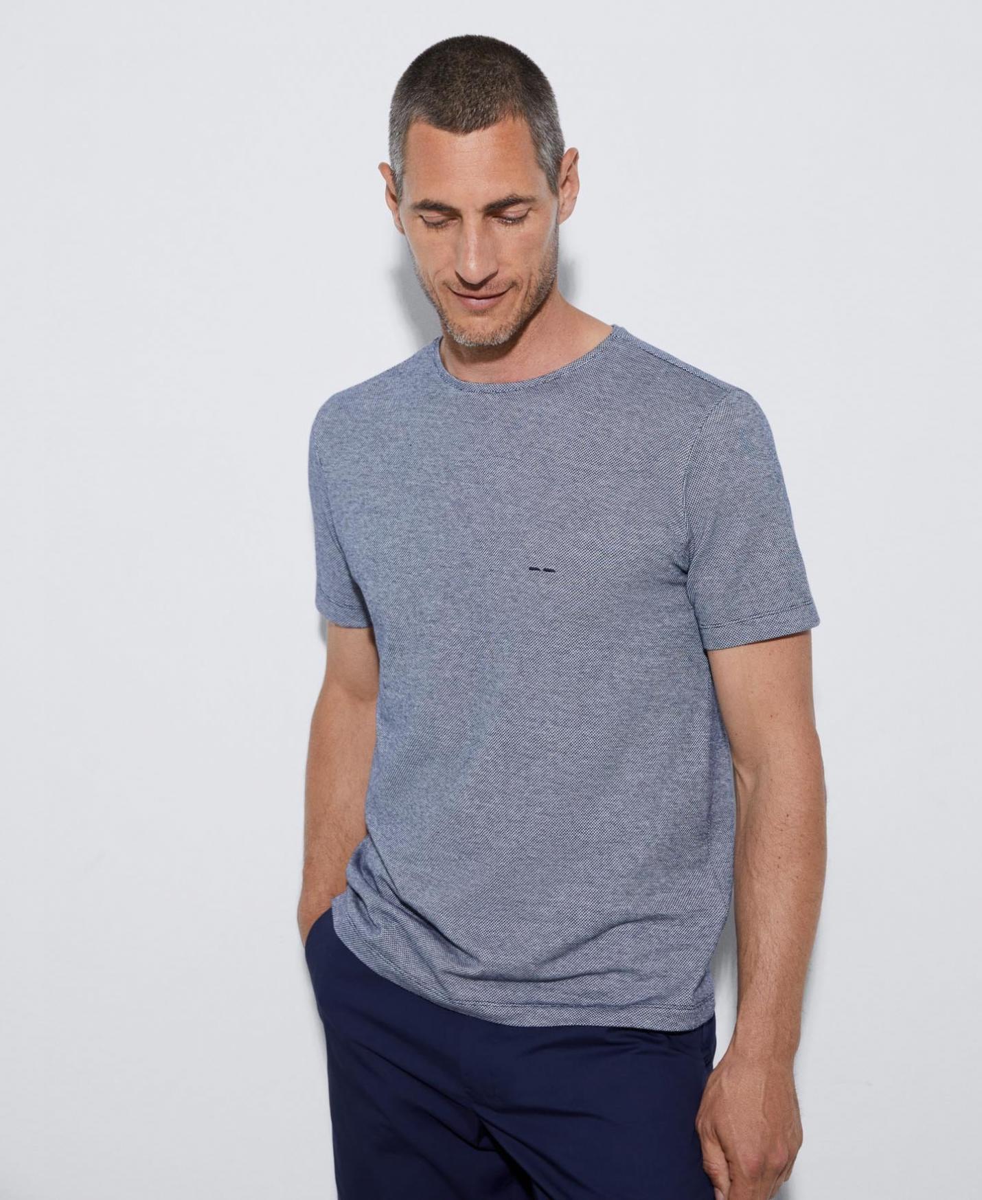 Camisetas y polos Adolfo Dominguez | Camiseta cuello caja en punto de lino Azulmarino Hombre