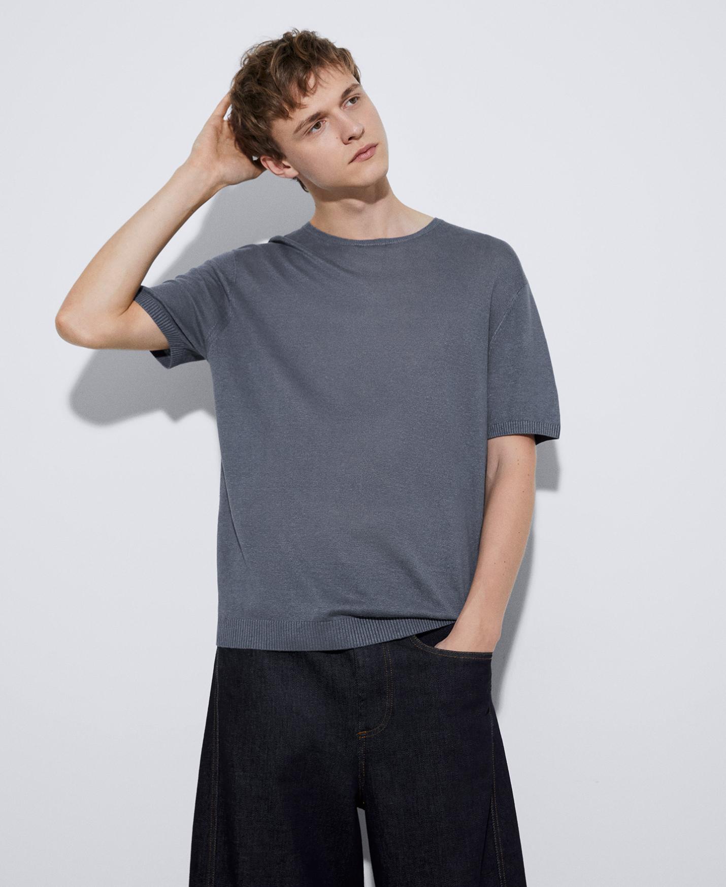Lino Adolfo Dominguez | Camiseta cuello caja en punto de lino Grisazul Hombre