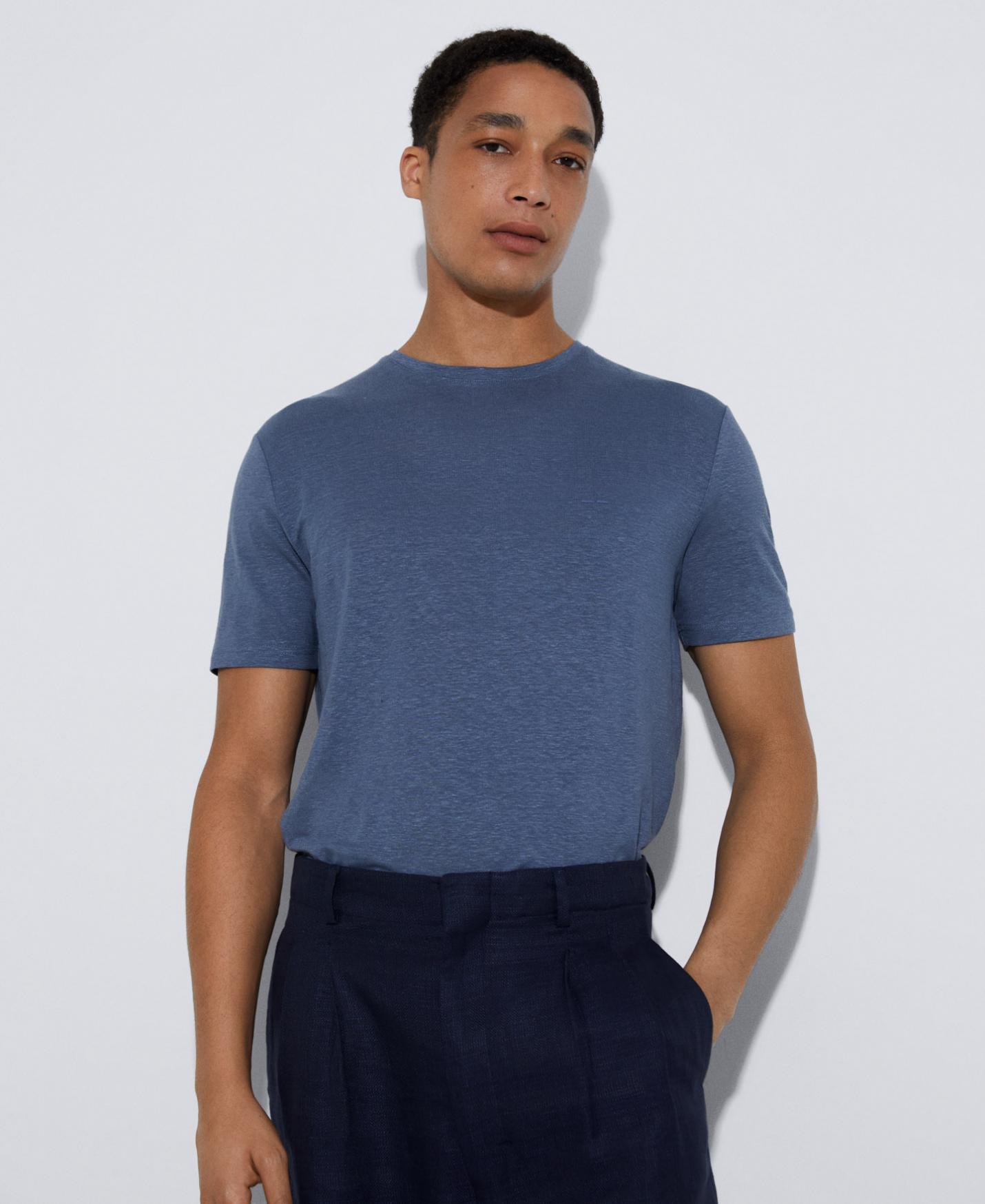 Camisetas y polos Adolfo Dominguez | Camiseta básica en lino elástico Azul Hombre