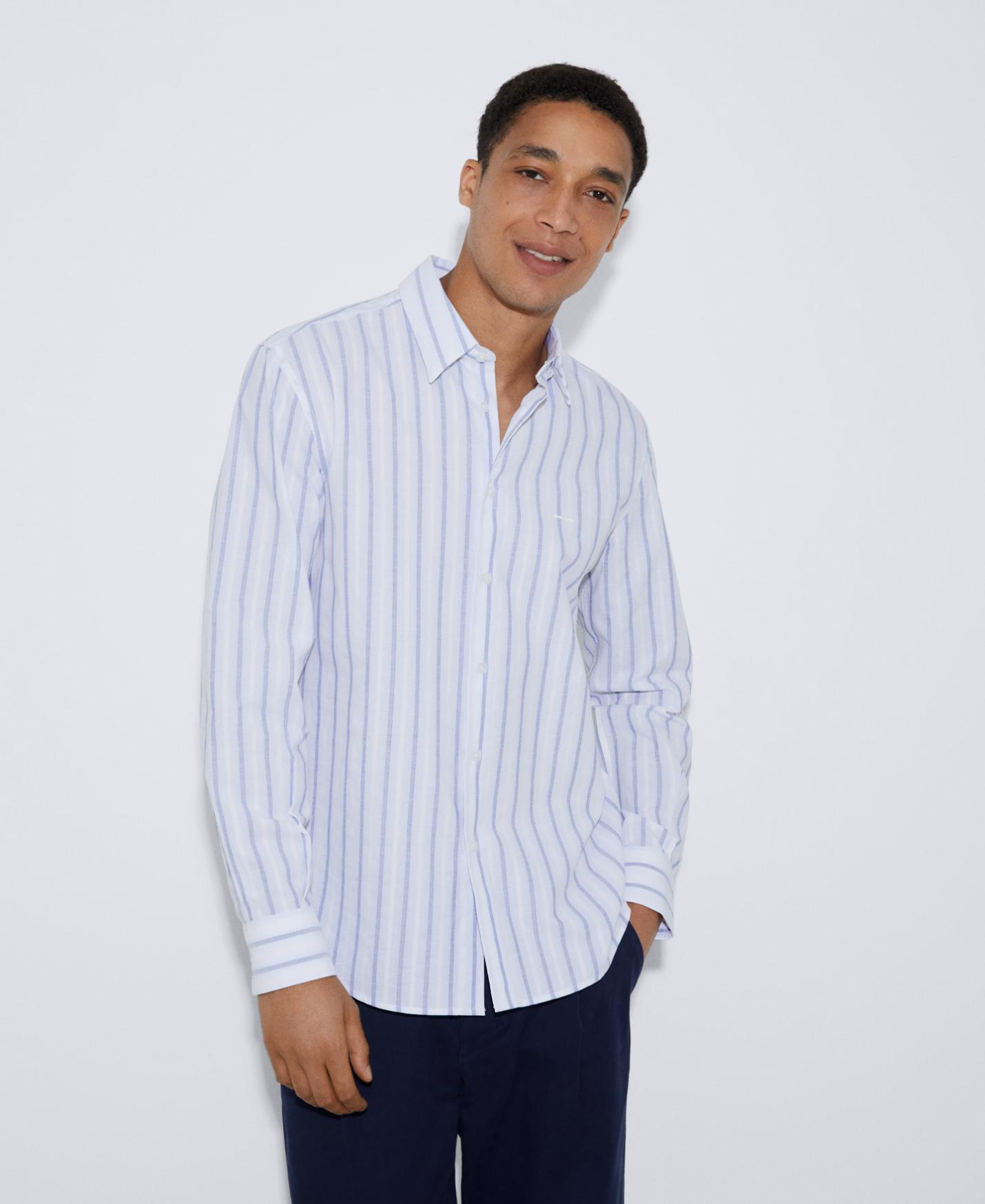Camisas Adolfo Dominguez | Camisa rayas en algodón orgánico Rayasblanco/Azul Hombre