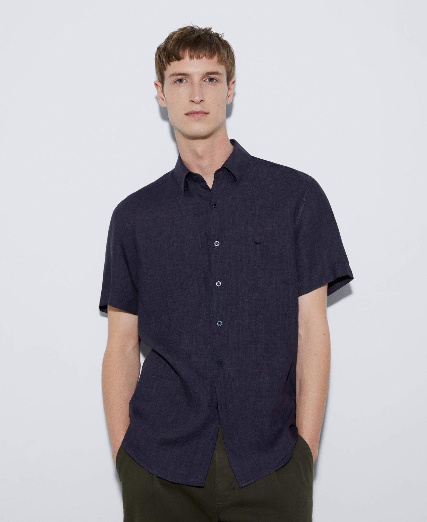 Camisas Adolfo Dominguez | Camisa manga corta en lino Berenjena Hombre