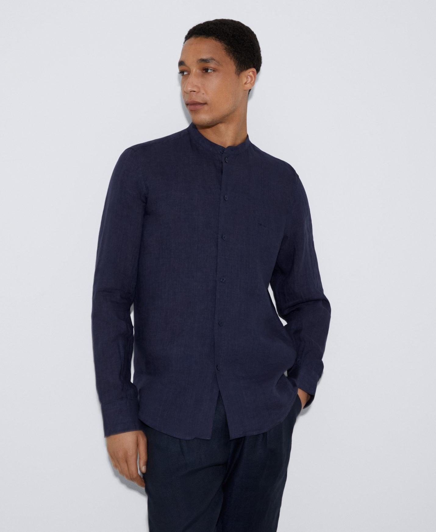 Lino Adolfo Dominguez | Camisa cuello mao en lino Azulmarino Hombre