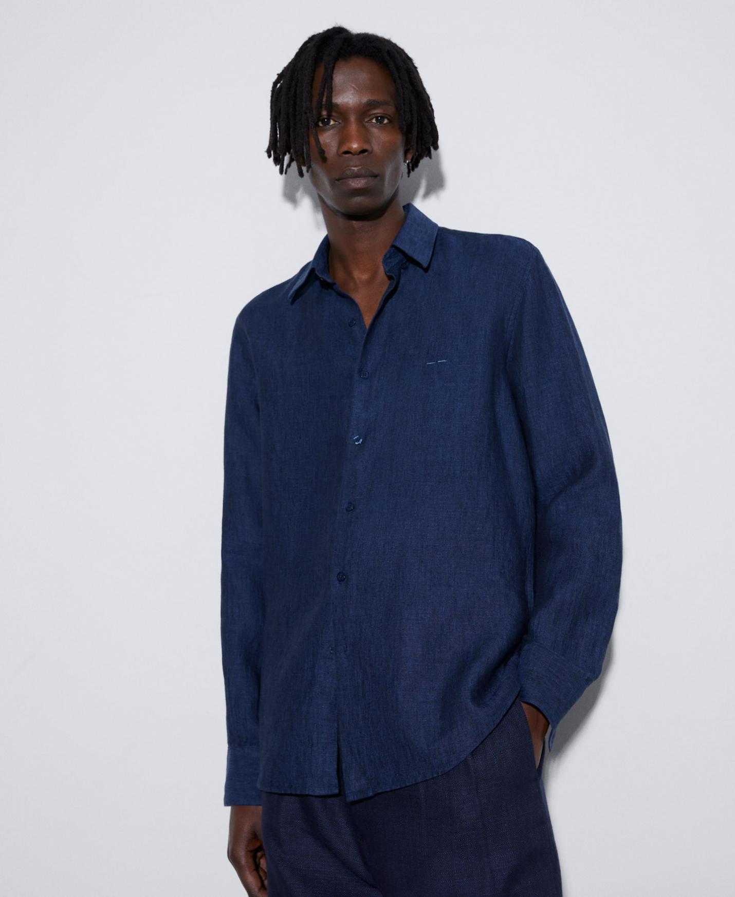Lino Adolfo Dominguez | Camisa manga larga en lino Azulmarino/Negro Hombre