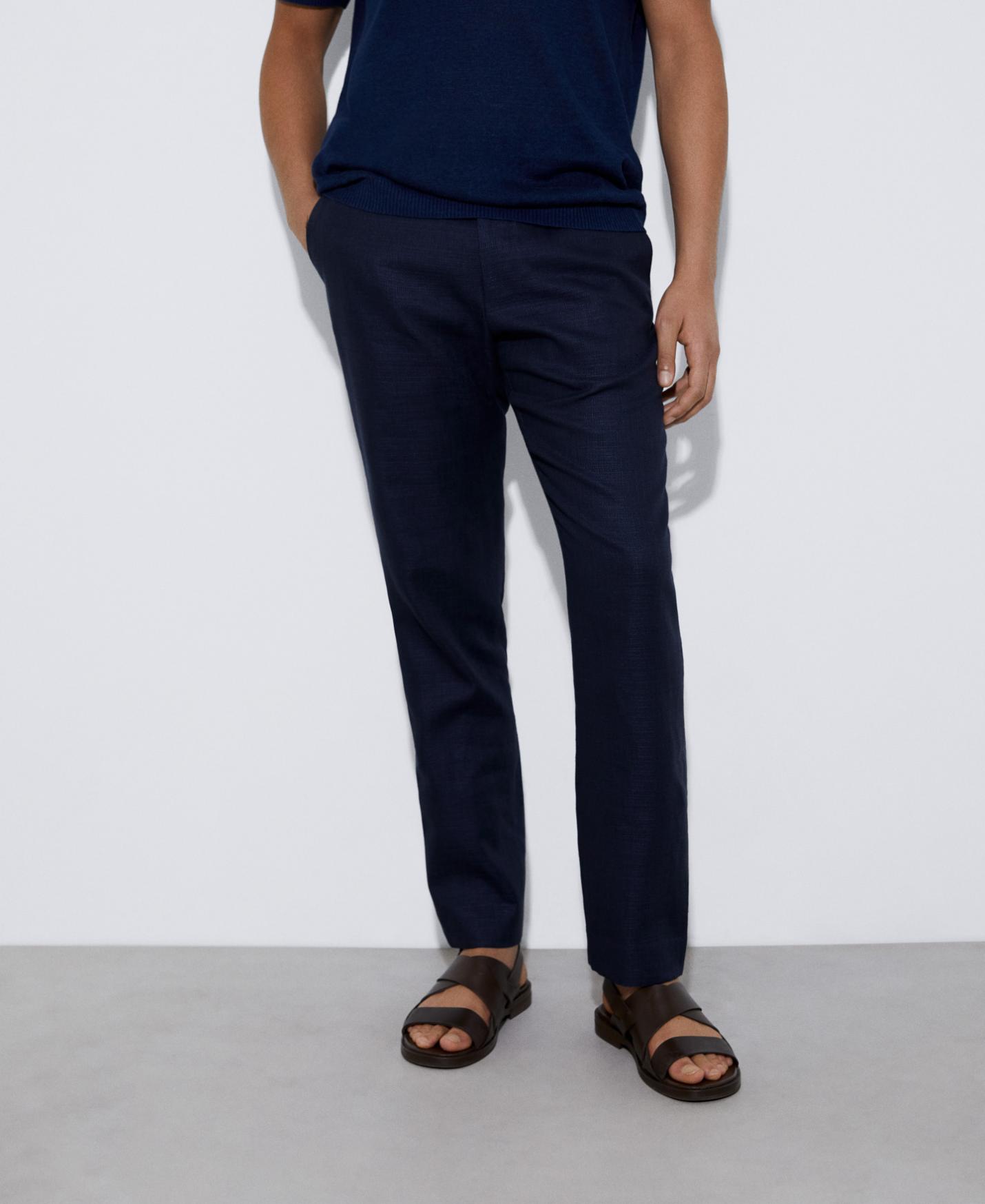 Pantalones Adolfo Dominguez | Pantalón chino en lino europeo y algodón Azulmarino Hombre