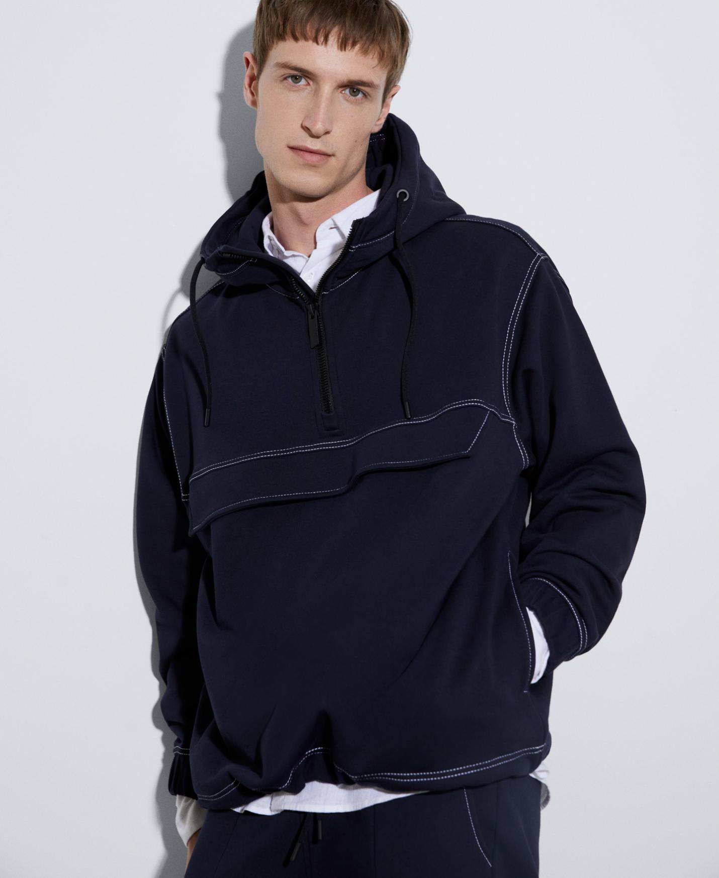 Punto Adolfo Dominguez | Sudadera con cremallera en algodón Azultopacio Hombre