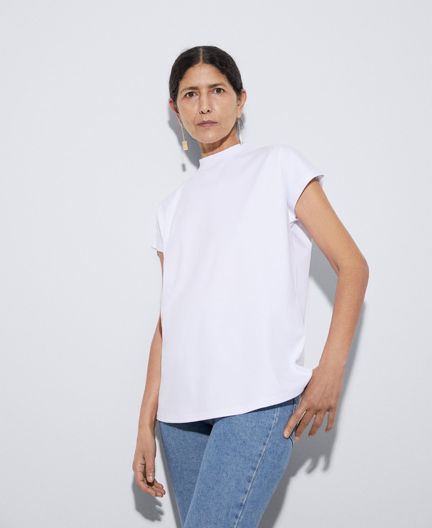 Básicos Adolfo Dominguez | Camiseta cuello perkins algodón orgánico Blanco Mujer