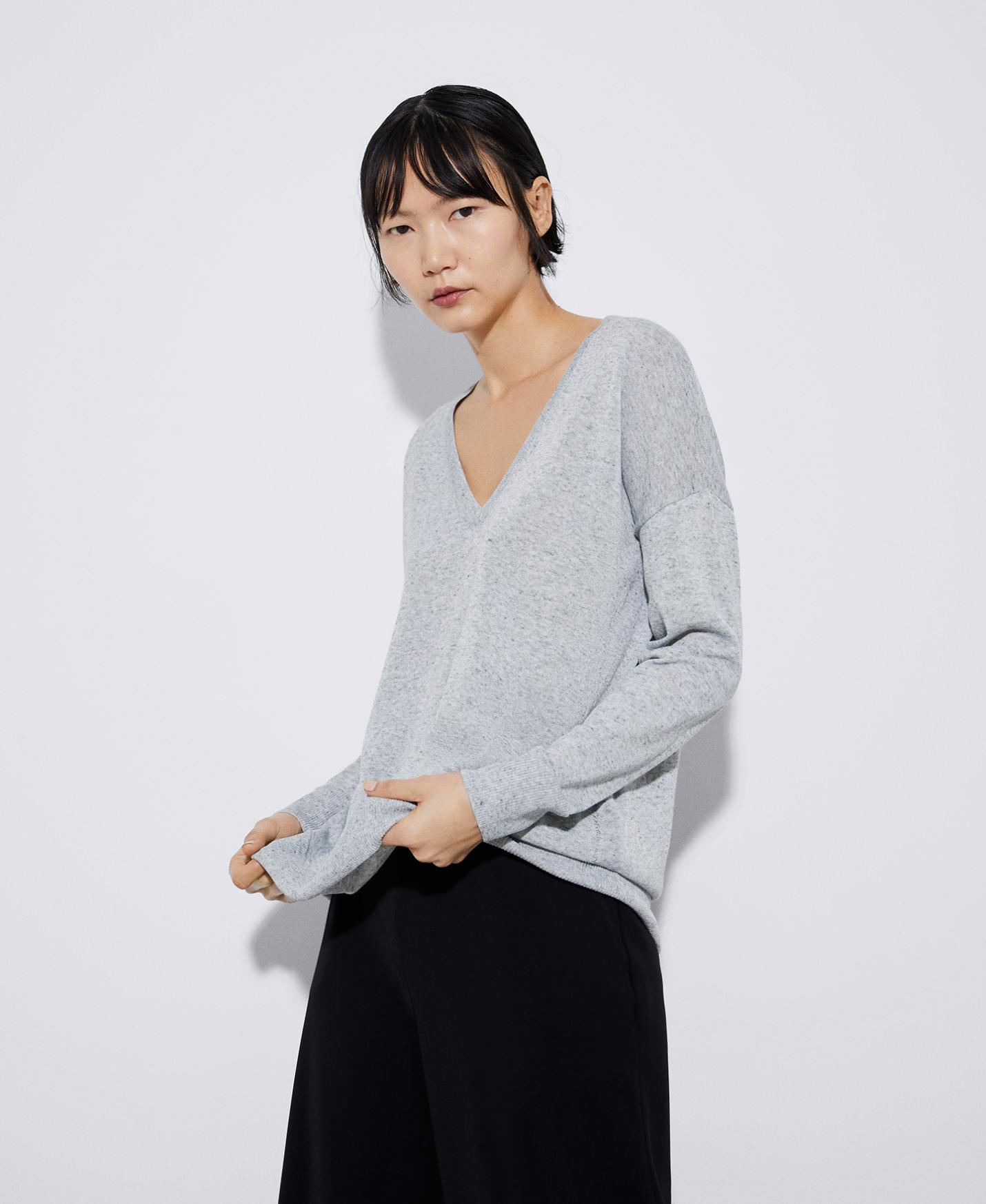Básicos Adolfo Dominguez | Jersey escote pico en lino y poliéster Grismelange Mujer