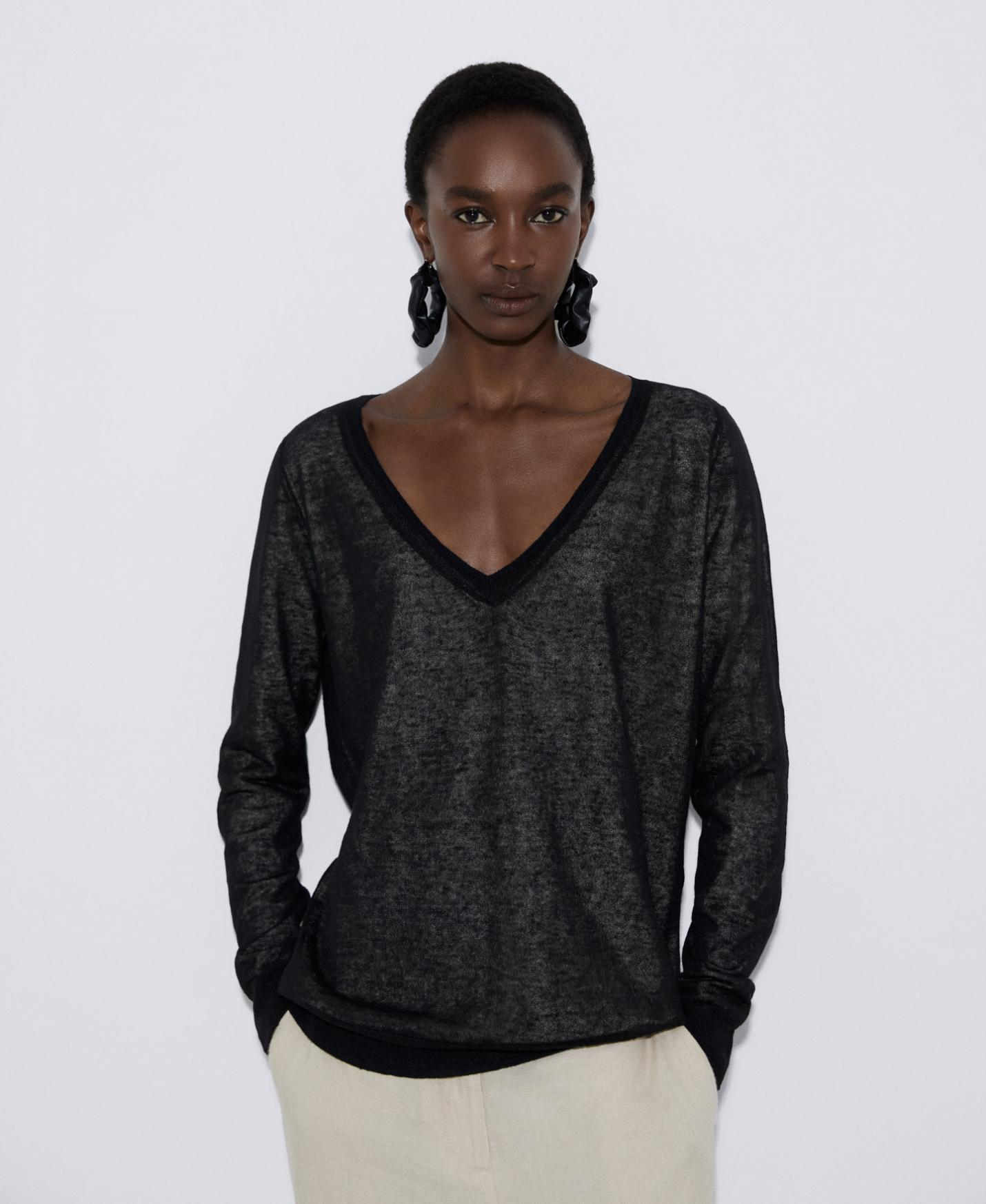 Lino Adolfo Dominguez | Jersey fino en lino Negro Mujer
