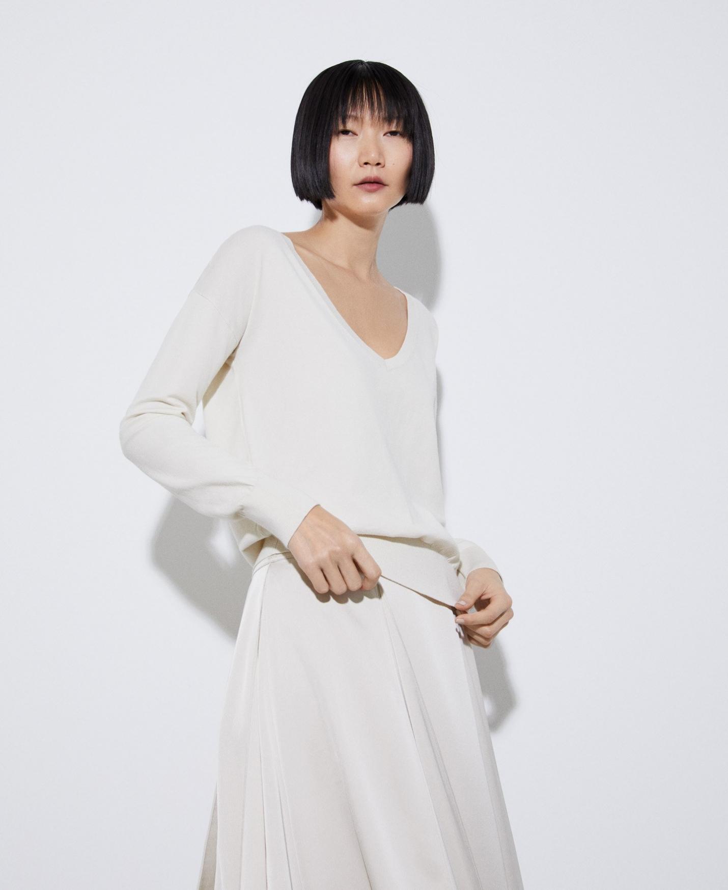 Punto Adolfo Dominguez | Jersey escote pico en punto de viscosa Beige Mujer