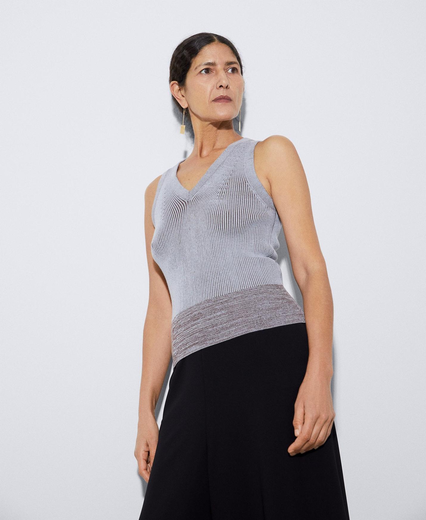 Punto Adolfo Dominguez | Top escote pico en punto vanisado Azulcelestemelange Mujer