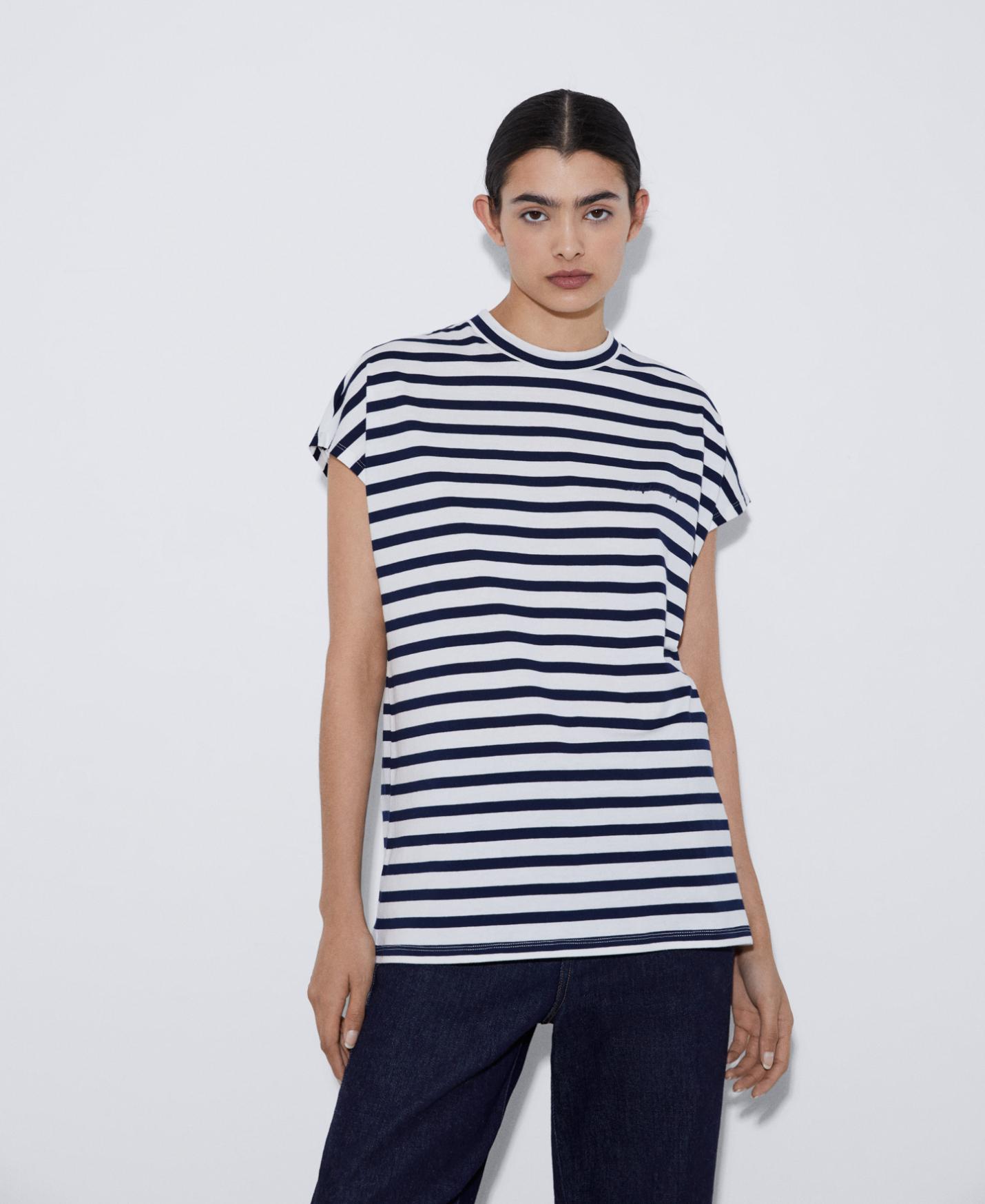Camisetas Adolfo Dominguez | Camiseta cuello caja en algodón orgánico Rayasblanco/Azul Mujer