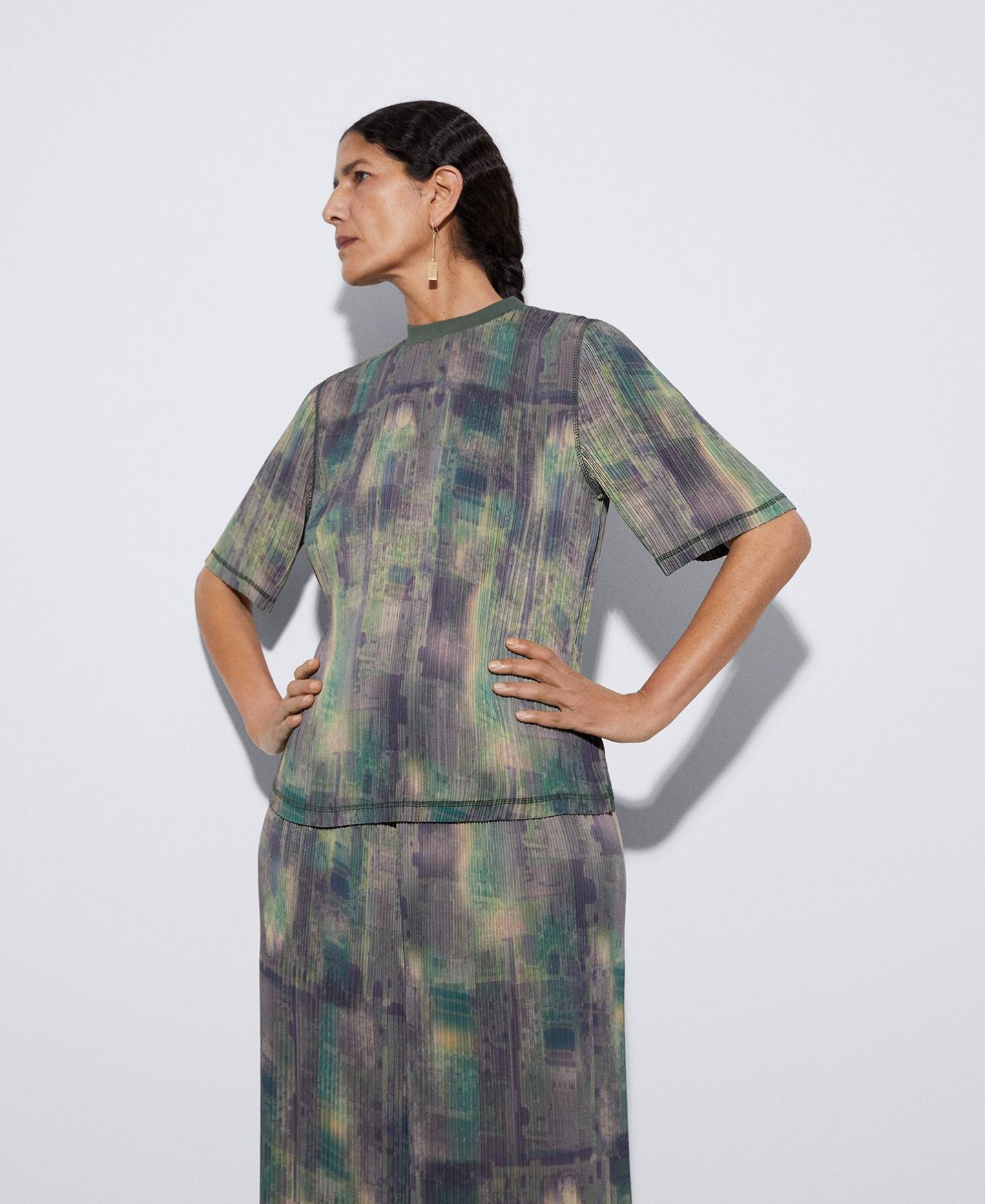 Camisetas Adolfo Dominguez | Camiseta estampada en crinkle Verdeestampado Mujer