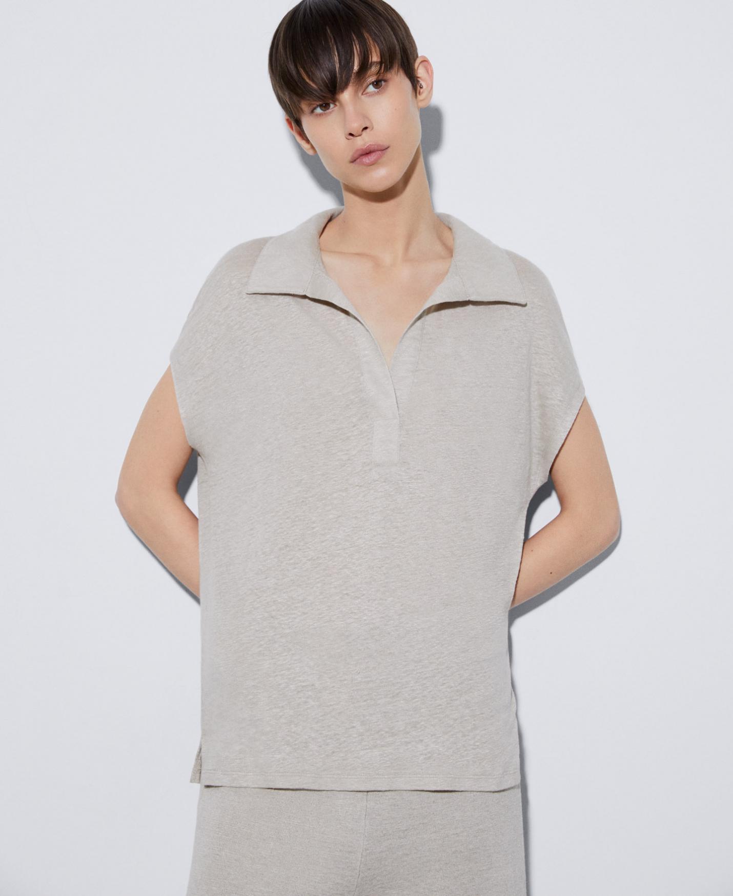 Camisetas Adolfo Dominguez | Polo con tapeta en lino Arena Mujer