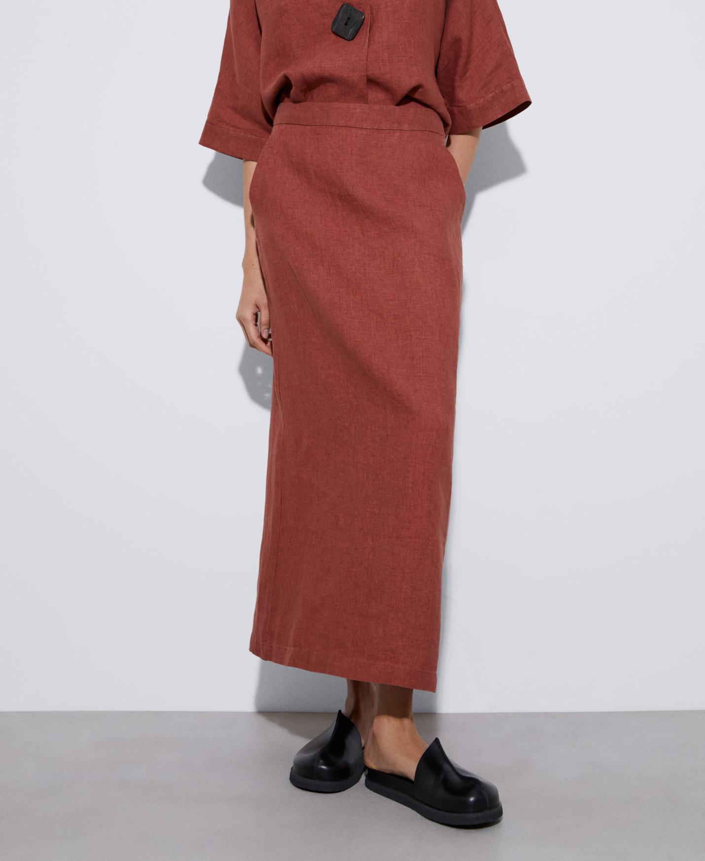 Faldas Adolfo Dominguez | Falda larga en lino responsable europeo Teja Mujer