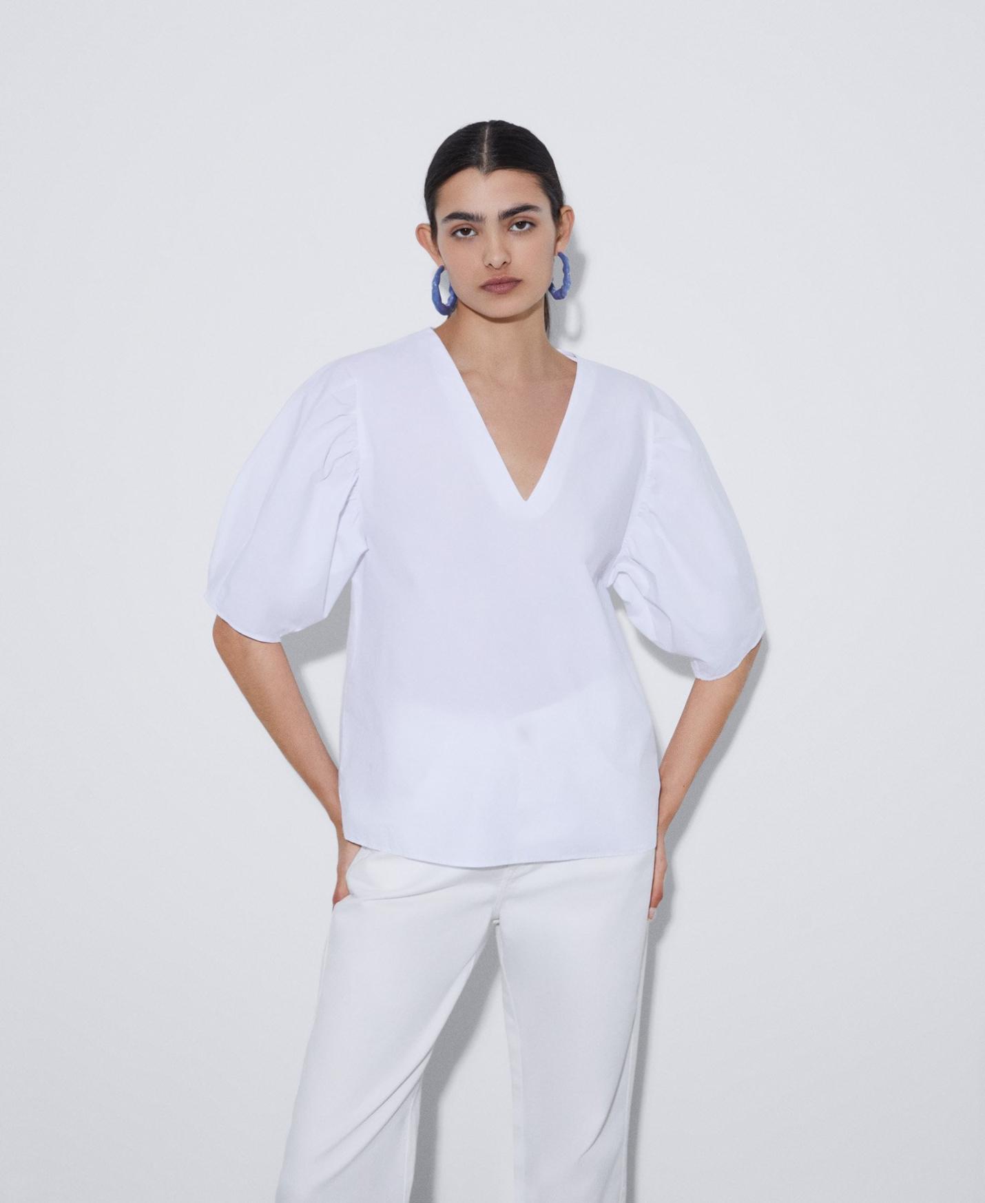 Camisas y tops Adolfo Dominguez | Blusa manga abullonada en algodón Blanco Mujer
