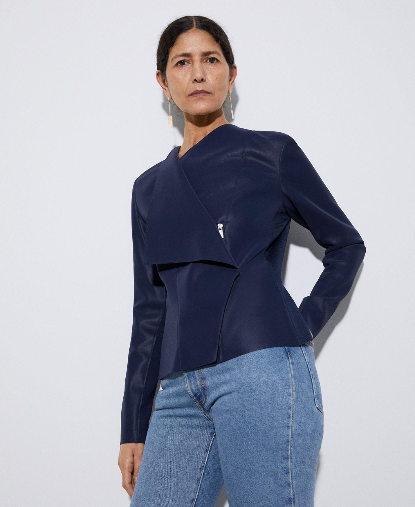 Prendas de abrigo Adolfo Dominguez | Chaqueta biker en poliéster Azulmarino Mujer