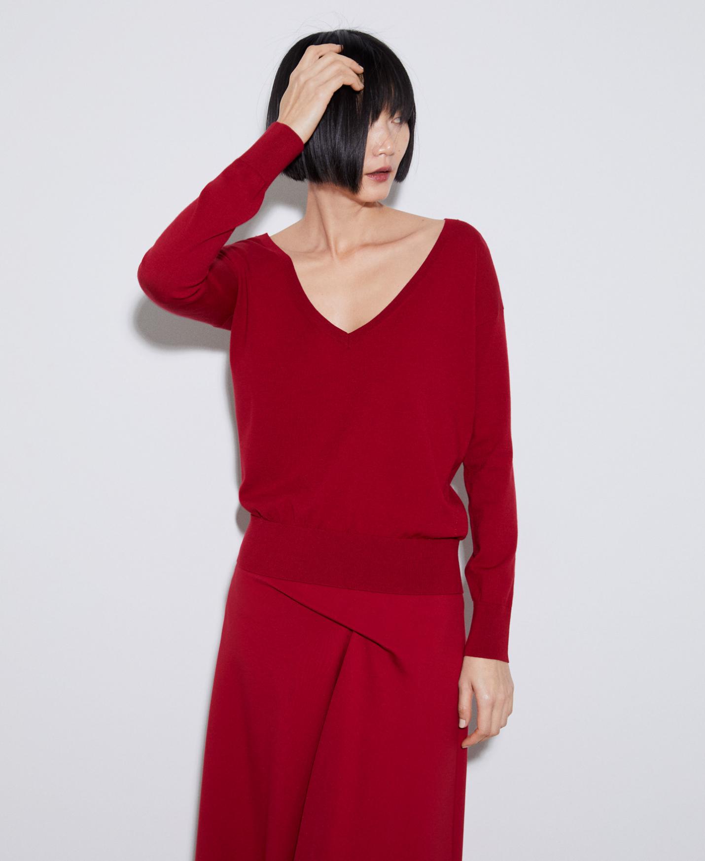 Punto Adolfo Dominguez | Jersey escote pico en punto de viscosa Coral Mujer