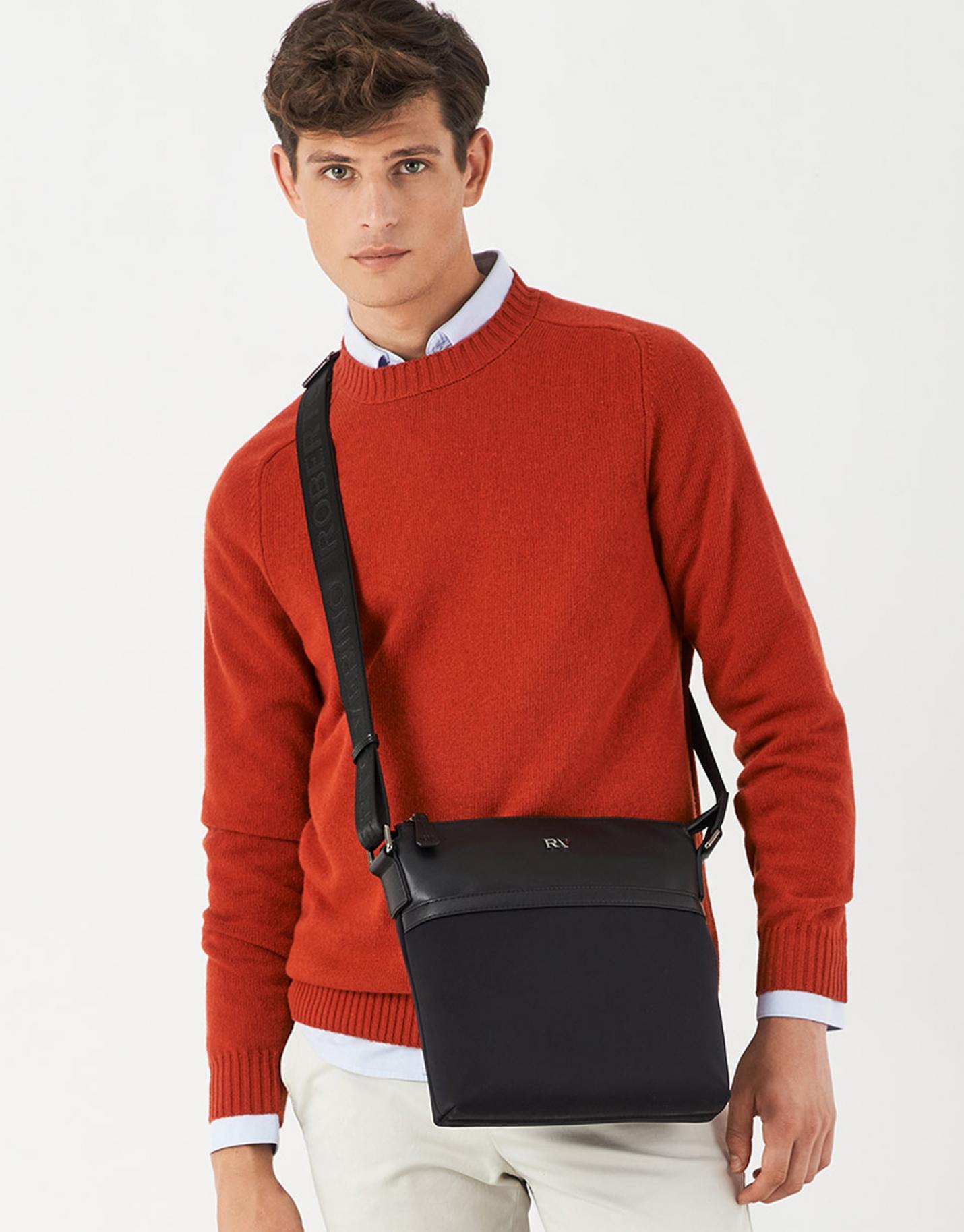Bolsos Roberto Verino | Bolso Messenger Charlie Nailon Y Piel Negro Hombre
