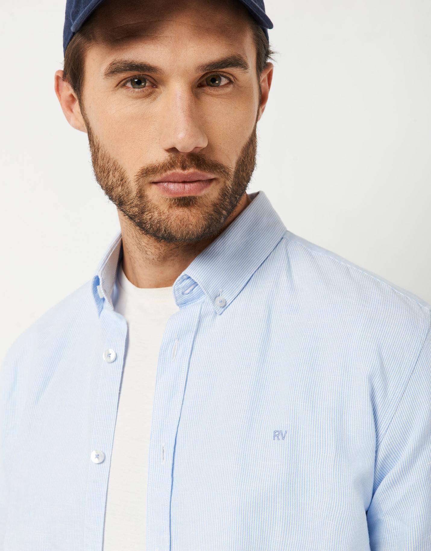 Camisas Roberto Verino | Camisa Sport Slim Fit Rayas Celeste Hombre
