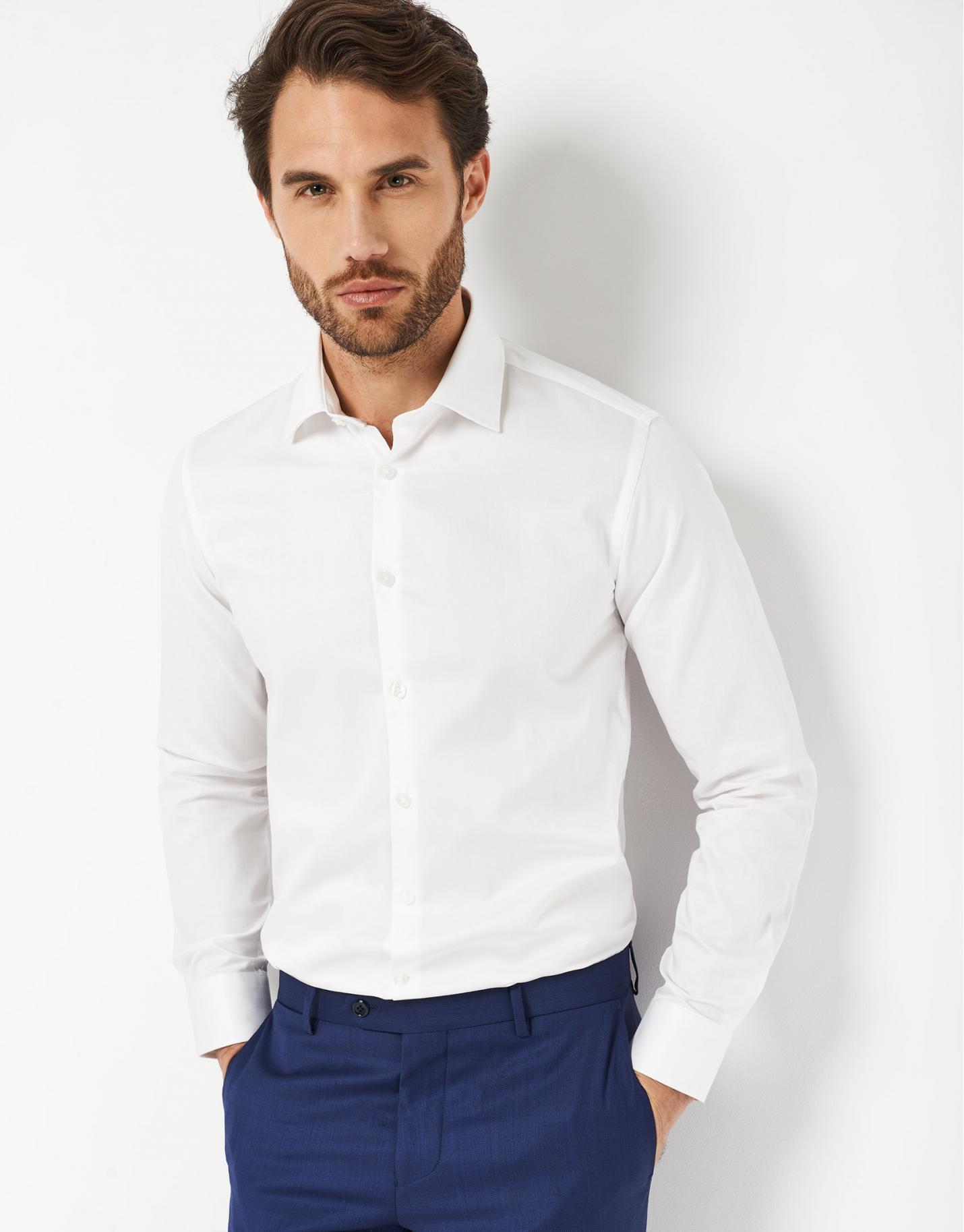 Camisas Roberto Verino | Camisa Vestir Regular Fit Sarga Blanca Hombre