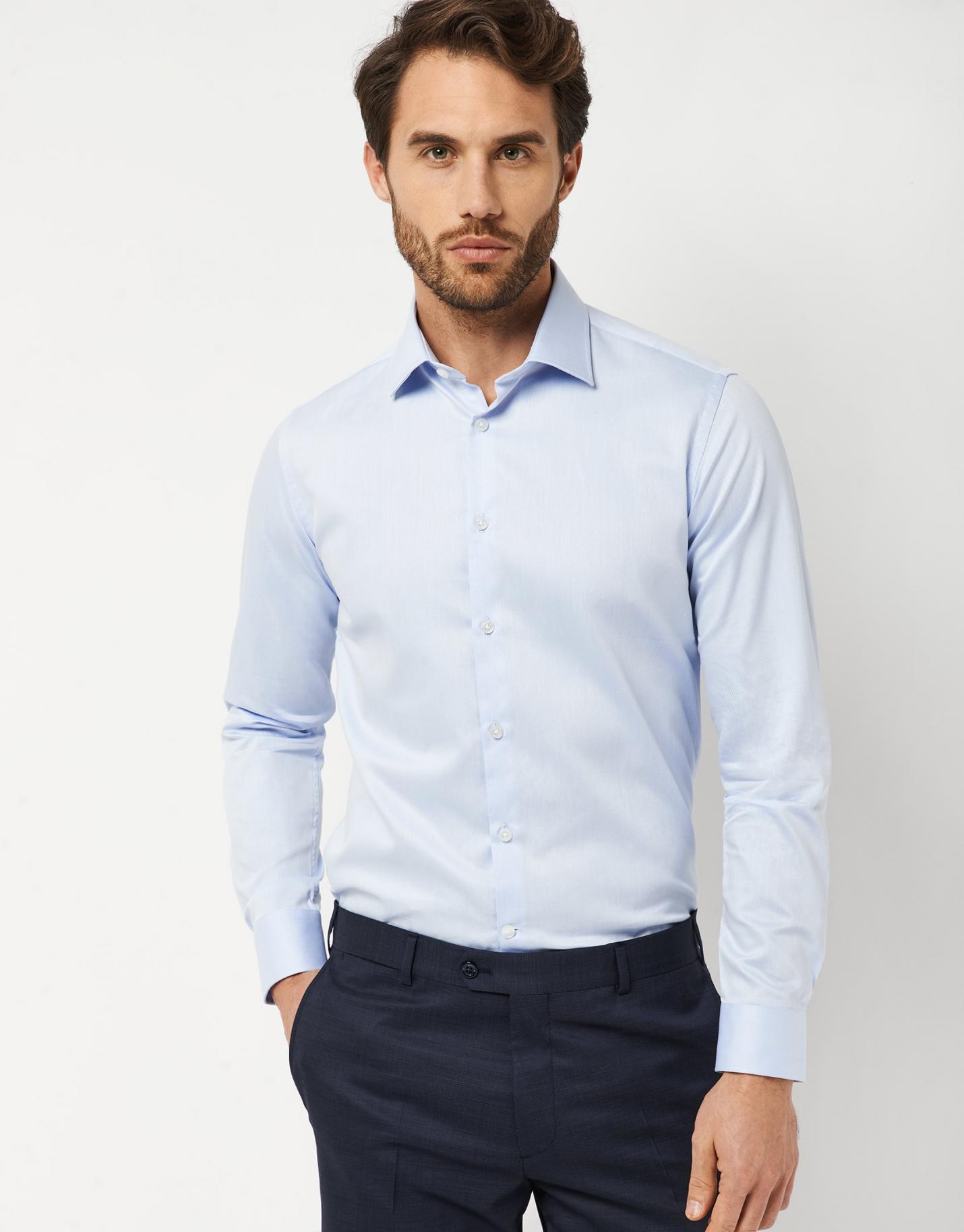 Camisas Roberto Verino | Camisa Vestir Slim Fit Microdibujo Celeste Hombre