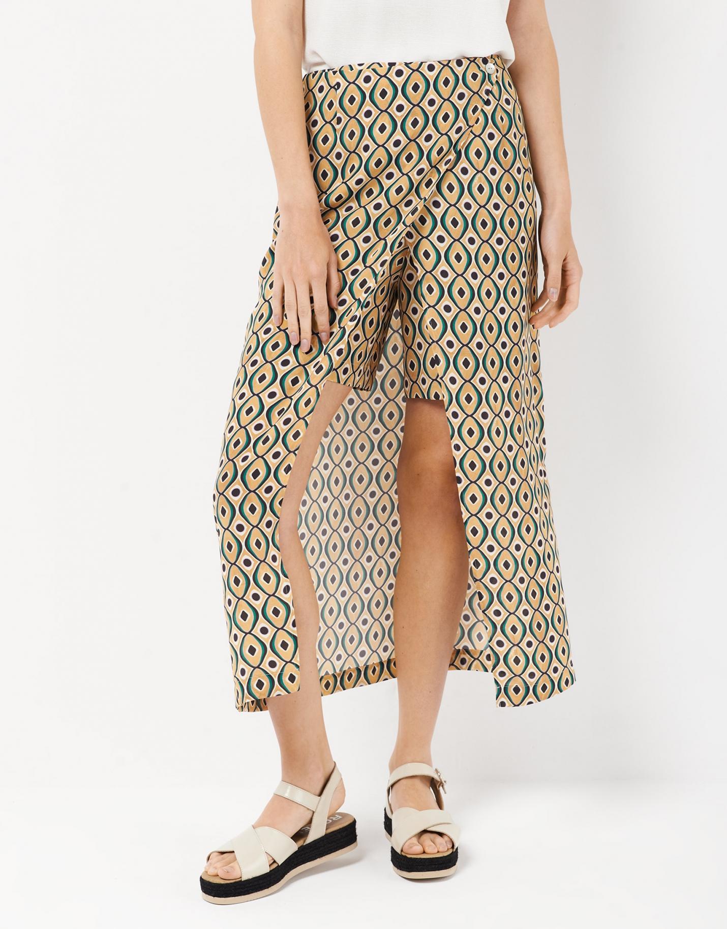 Faldas Roberto Verino | Falda Midi Con Short Estampado Fluido Tonos Verdes Mujer