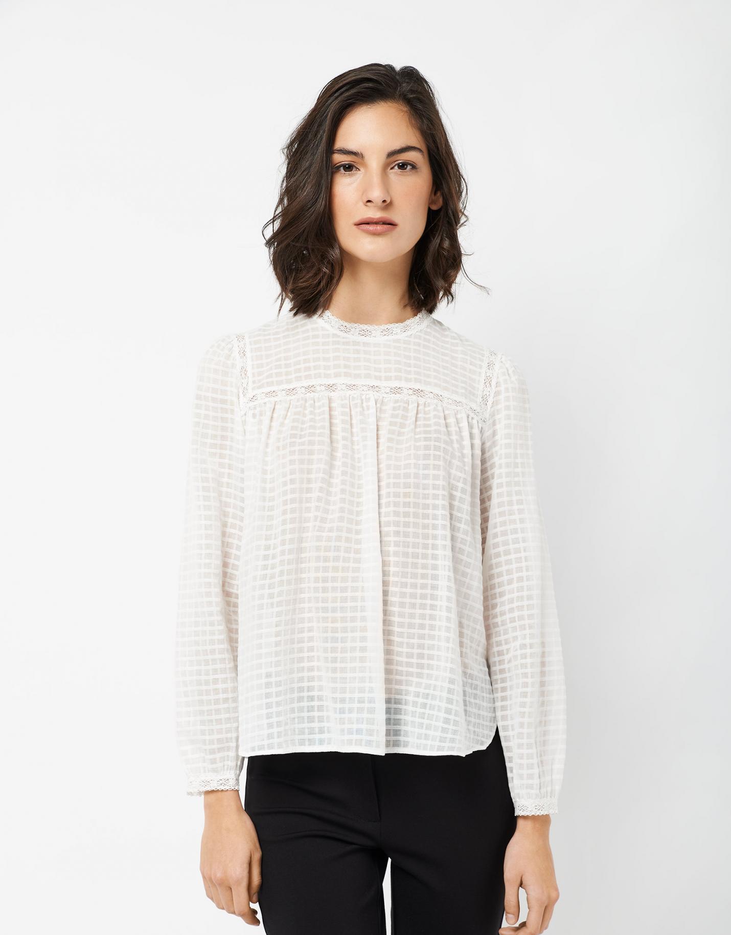 Camisas & Blusas Roberto Verino | Blusa Voile De Algodón Blanco Con Puntilla Mujer