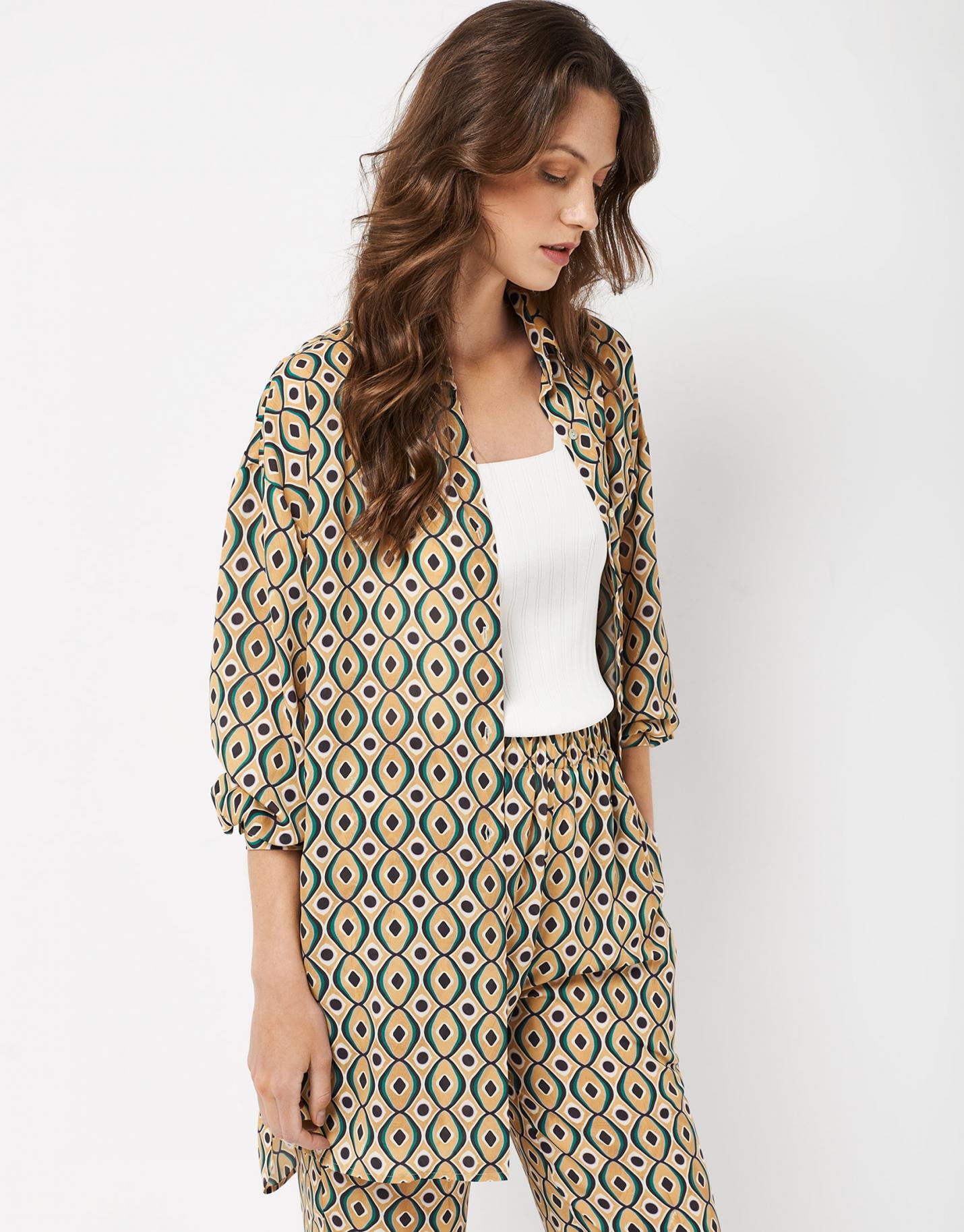 Camisas & Blusas Roberto Verino | Blusón Asimétrico Estampado Fluido Tonos Verdes Mujer