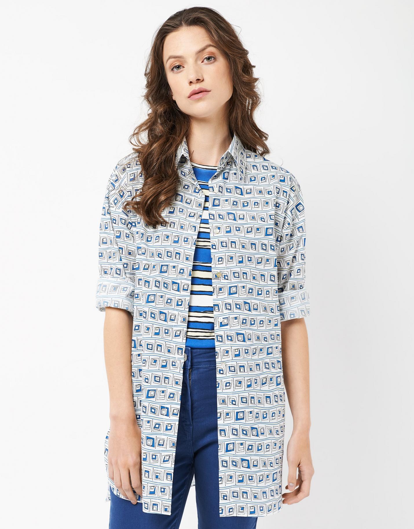 Camisas & Blusas Roberto Verino | Blusón Asimétrico Estampado Geométrico Azules Mujer