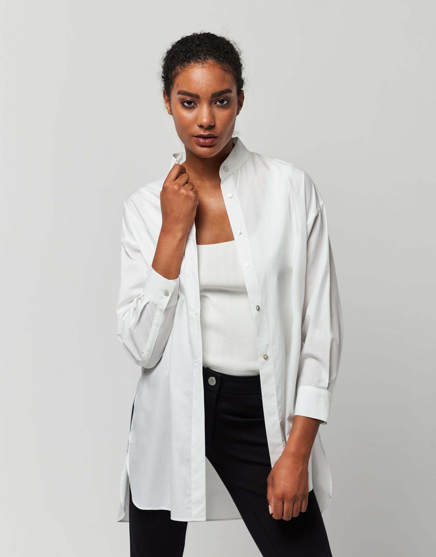Camisas & Blusas Roberto Verino | Camisa Asimétrica Cuello Mao Blanca Mujer