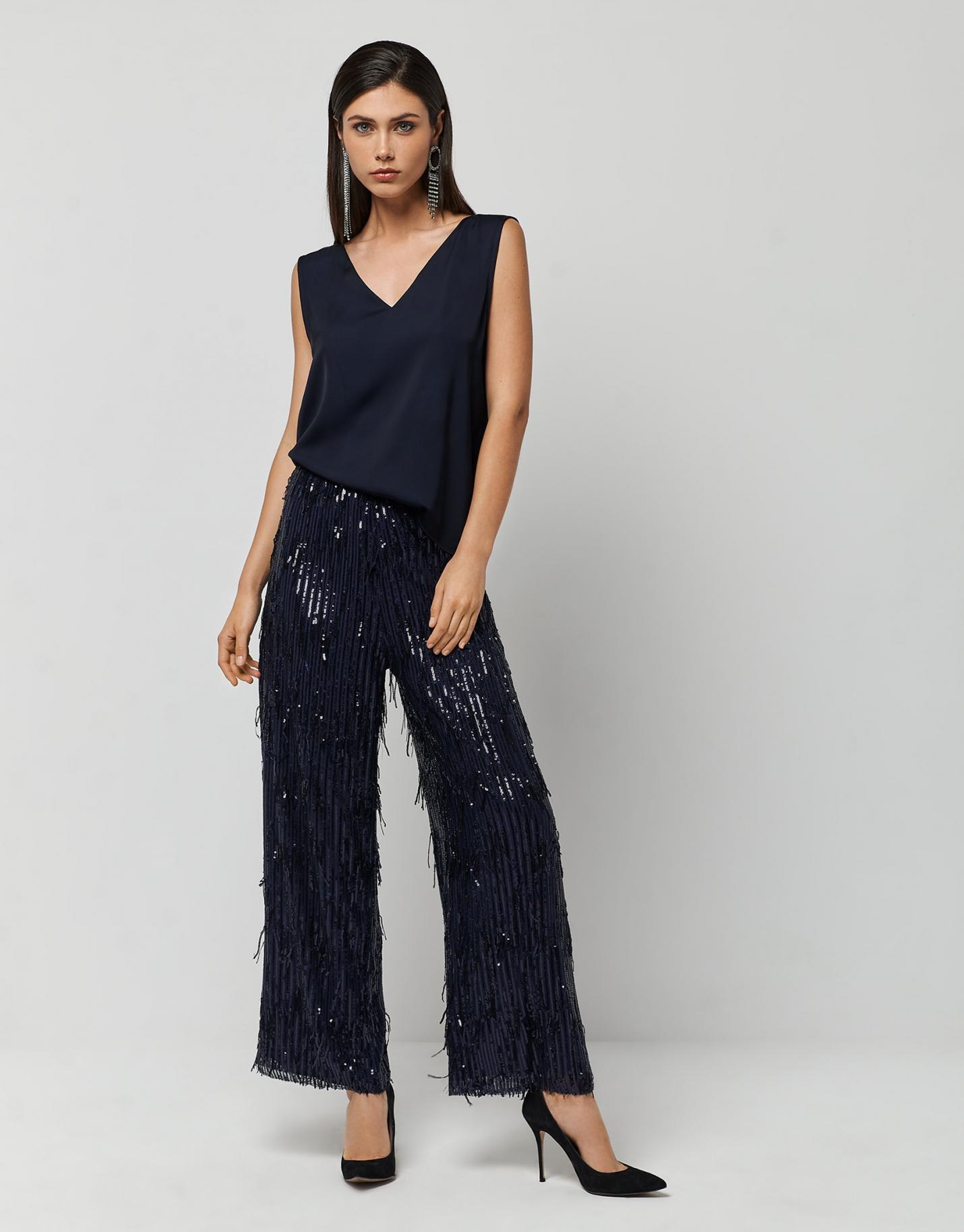 Dancing with lights Roberto Verino | Pantalón Cintas Lentejuelas Azul Noche Mujer