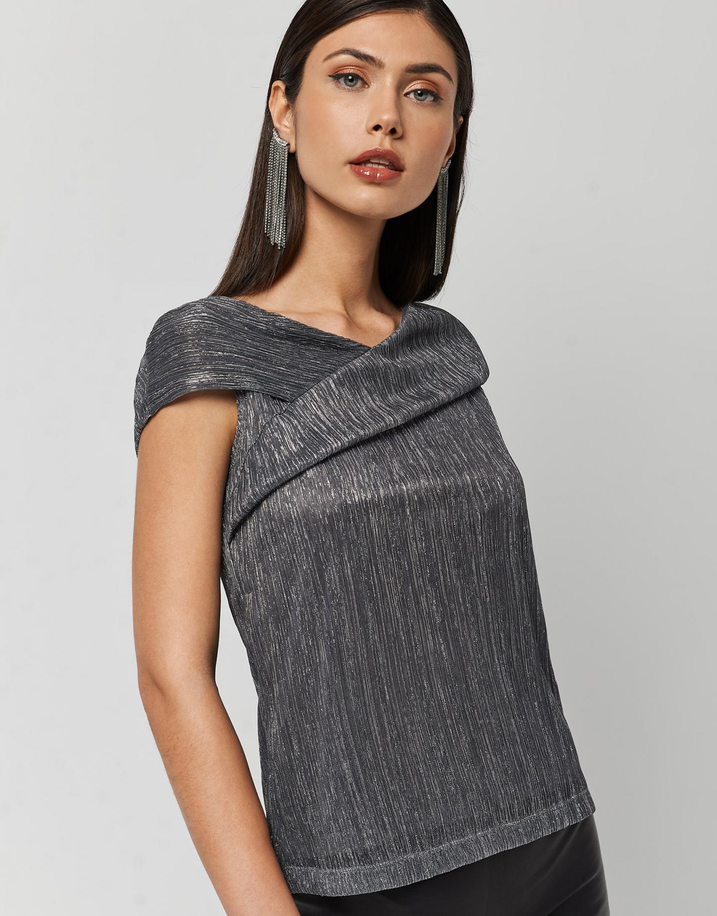 Dancing with lights Roberto Verino | Top Escote Cruzado Lúrex Gris Plata Mujer