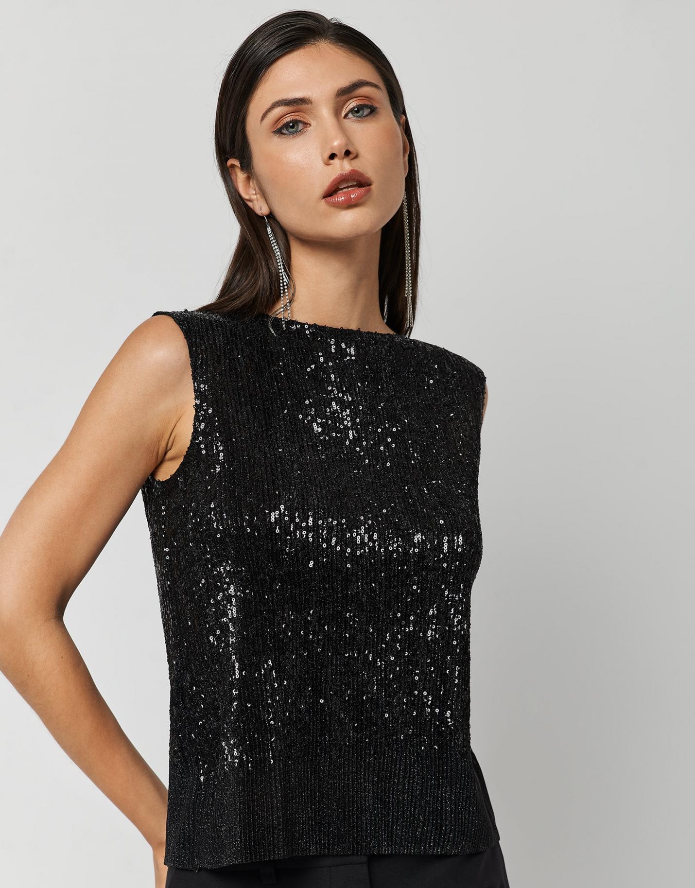 Dancing with lights Roberto Verino | Top Sin Mangas Lentejuelas Negro Mujer