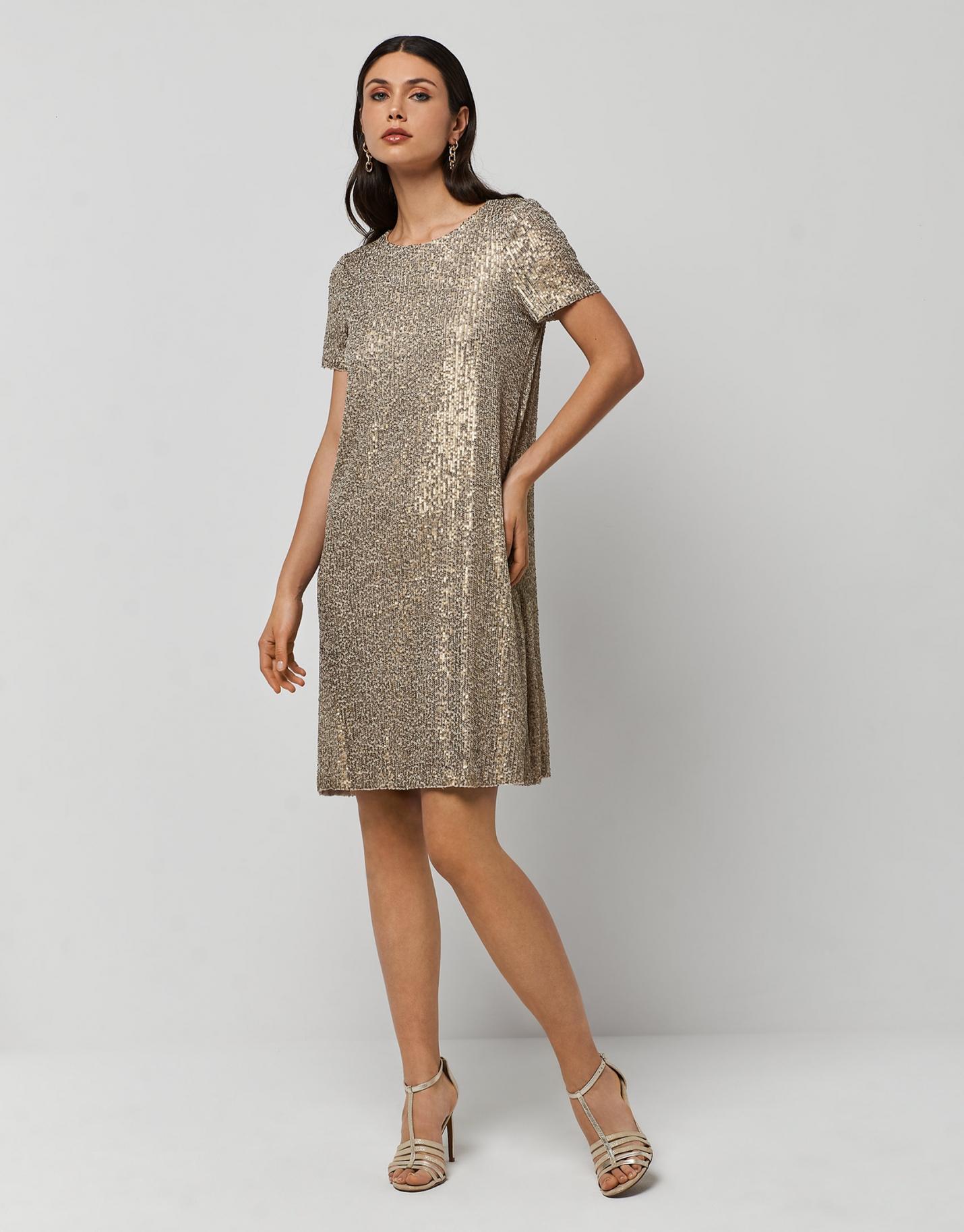 Dancing with lights Roberto Verino | Vestido Manga Corta Lentejuelas Doradas Mujer