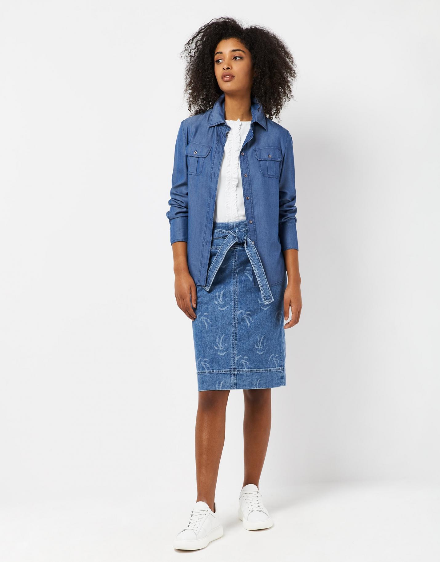 Faldas Roberto Verino | Falda Lápiz Vaquera Con Flor Mujer