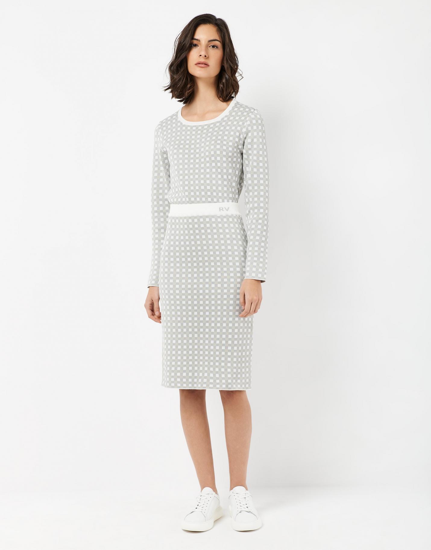 Faldas Roberto Verino | Falda Midi Jacquard Cuadros Gris/Beige Mujer