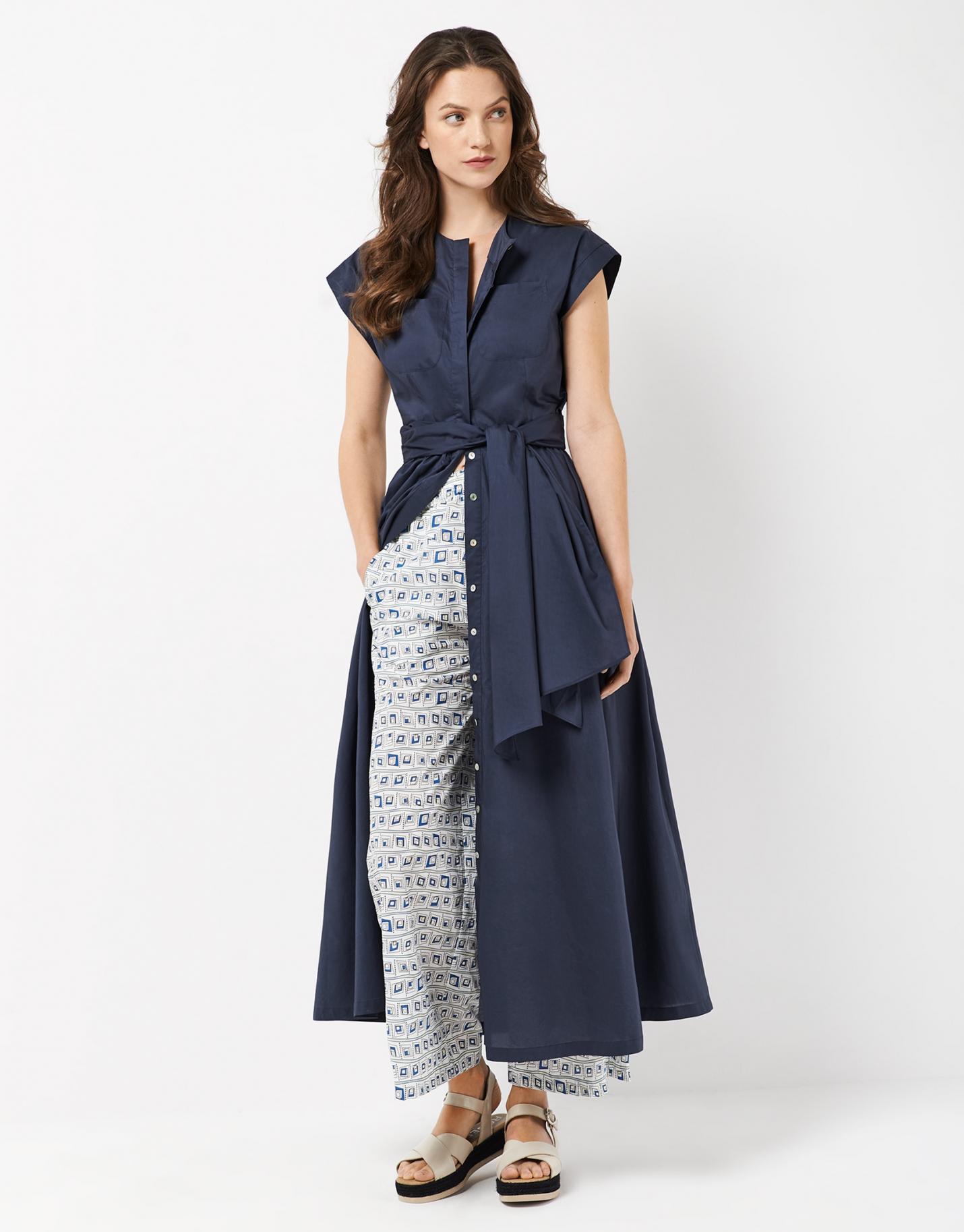 Vestidos Roberto Verino | Vestido Camisero Midi Con Lazada Azul Marino Mujer