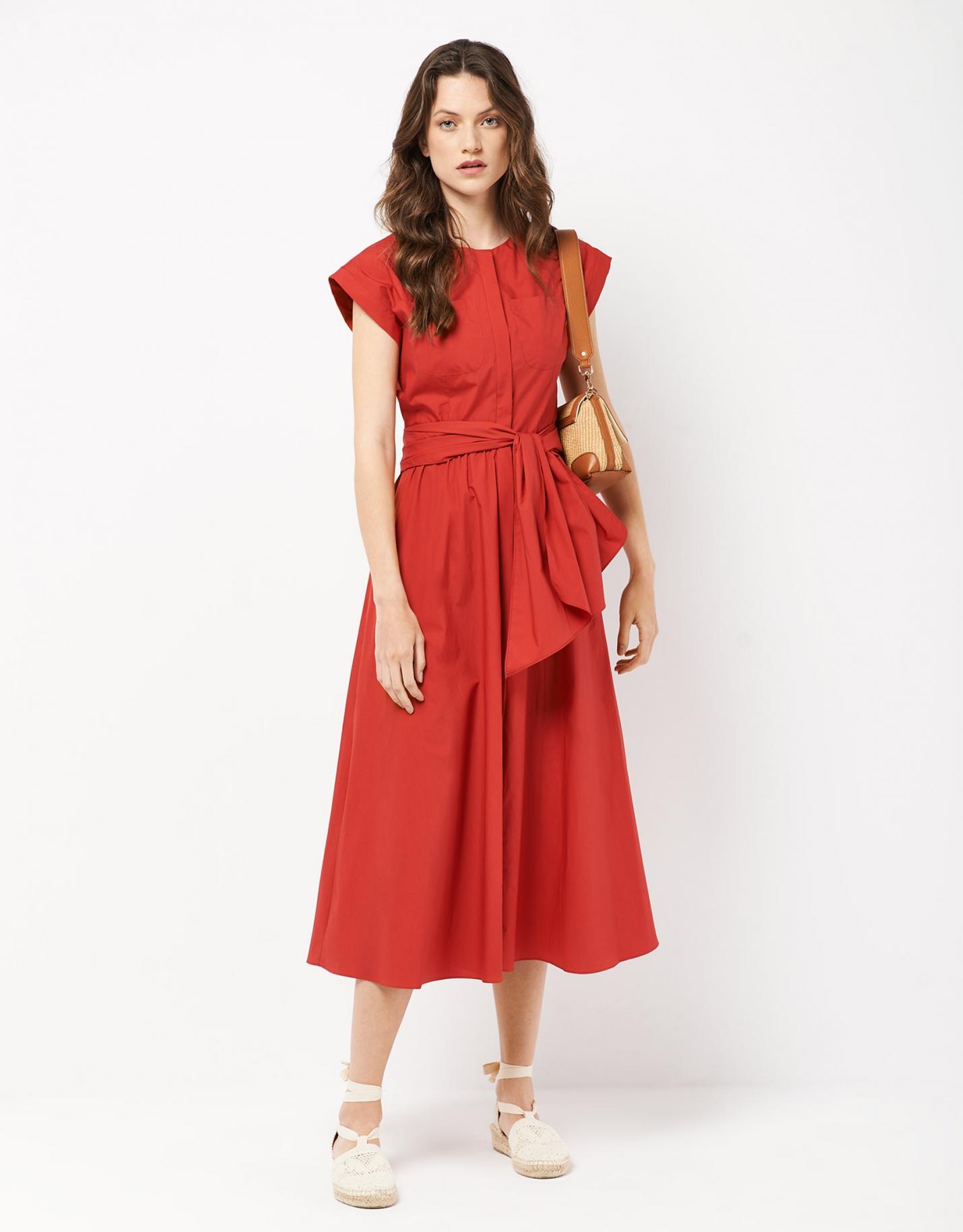 Vestidos Roberto Verino | Vestido Camisero Midi Con Lazada Rojo Mujer