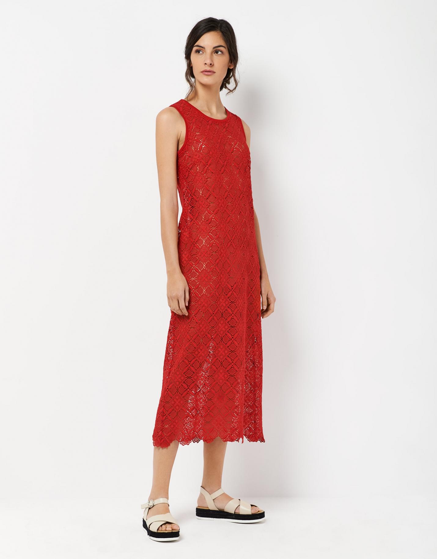 Vestidos Roberto Verino | Vestido Largo Encaje Rojo Mujer