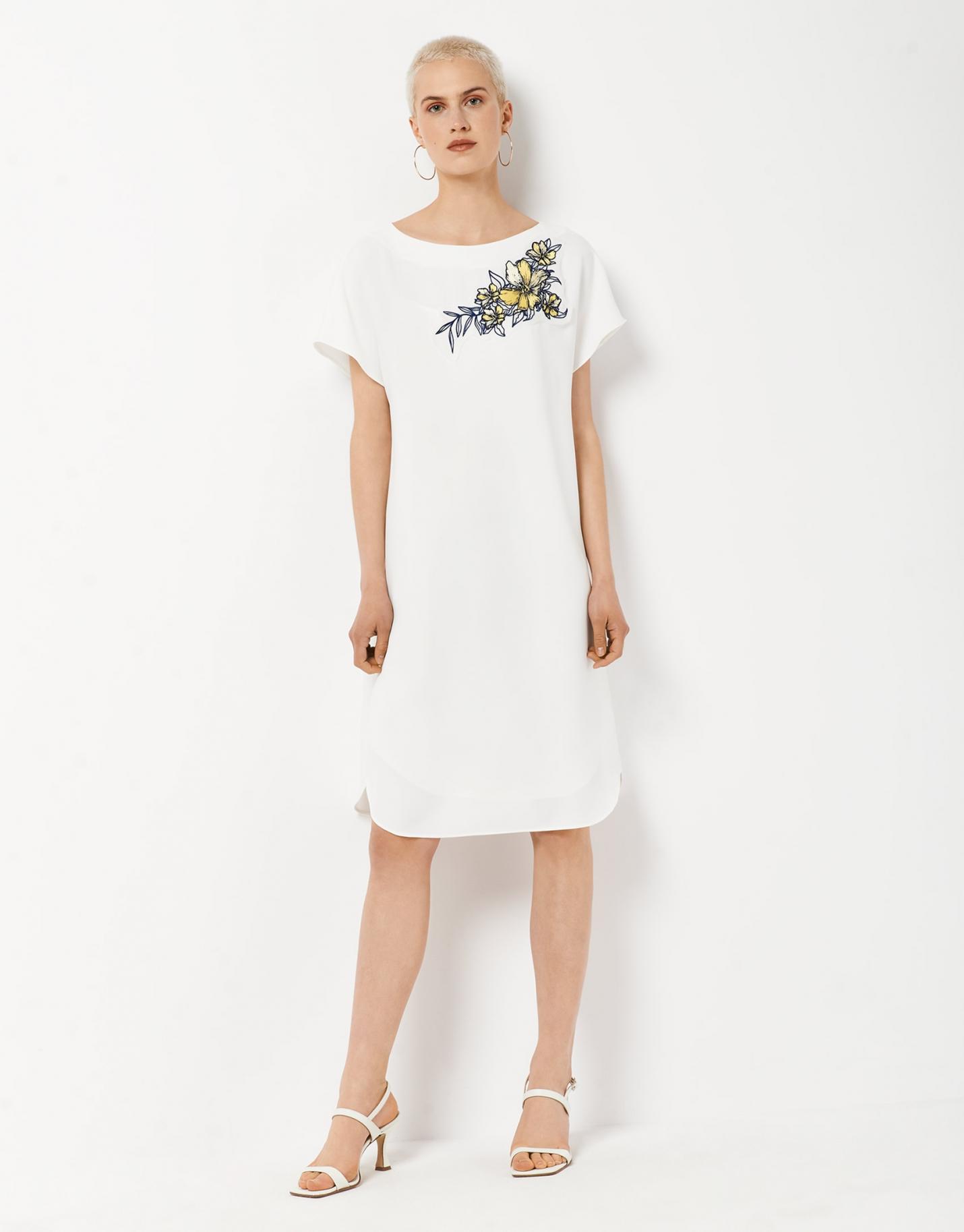 Vestidos Roberto Verino | Vestido Midi Holgado Blanco Con Motivo Floral En Pecho Mujer