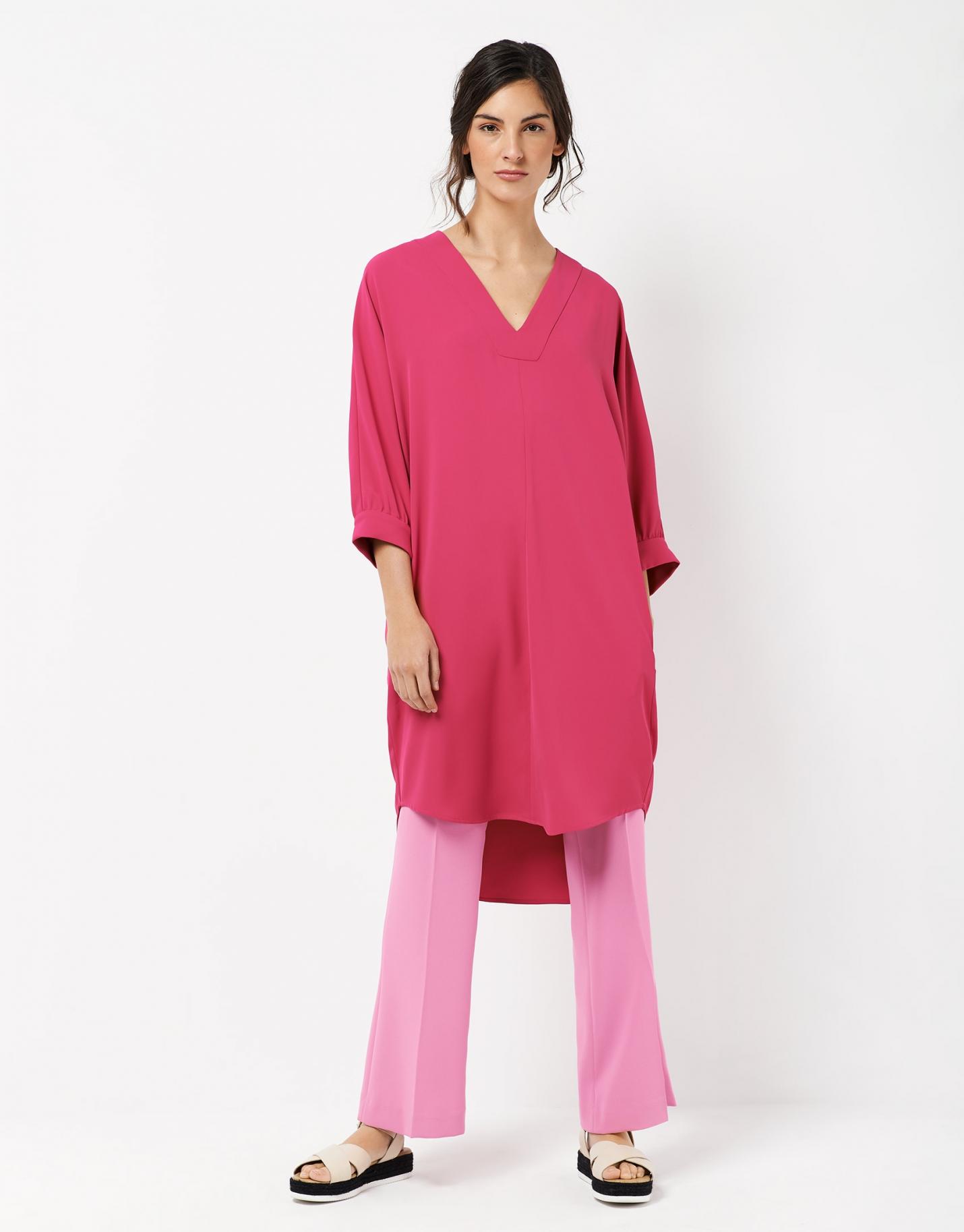 Vestidos Roberto Verino | Vestido Midi Holgado Escote Pico Fucsia Mujer