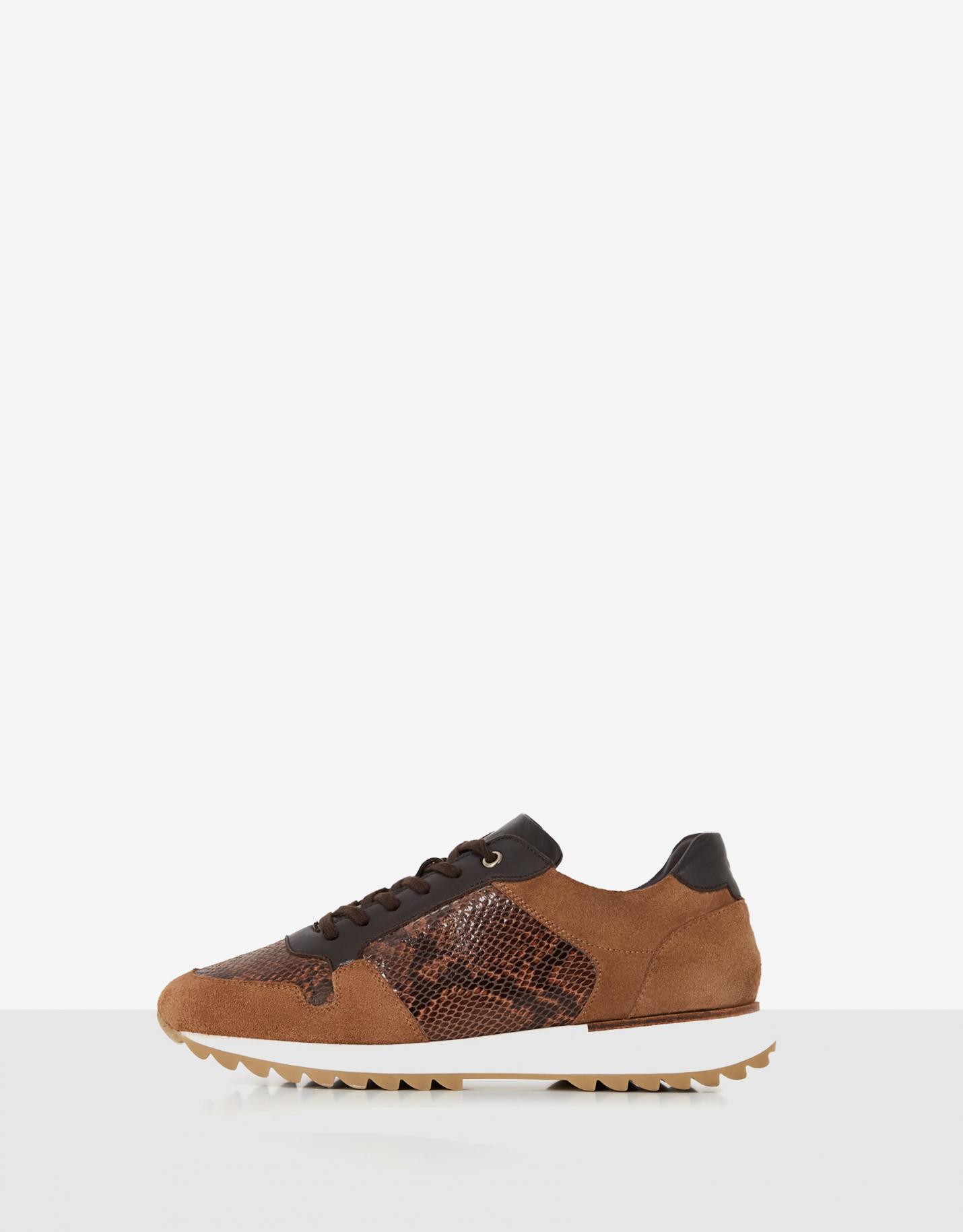 Zapatos Roberto Verino | Deportiva Ante, Piel Y Serpiente Marrón Mujer