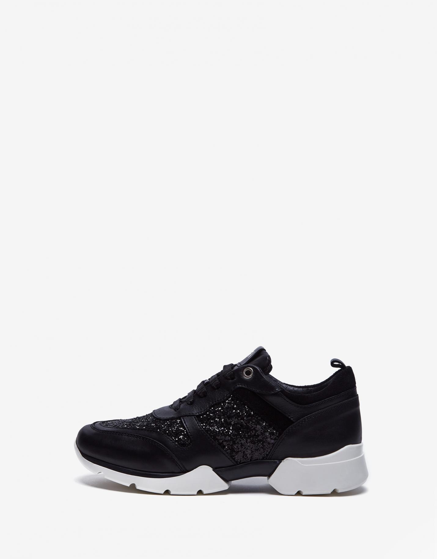 Zapatos Roberto Verino | Deportiva Piel Negra Y Glitter Mujer