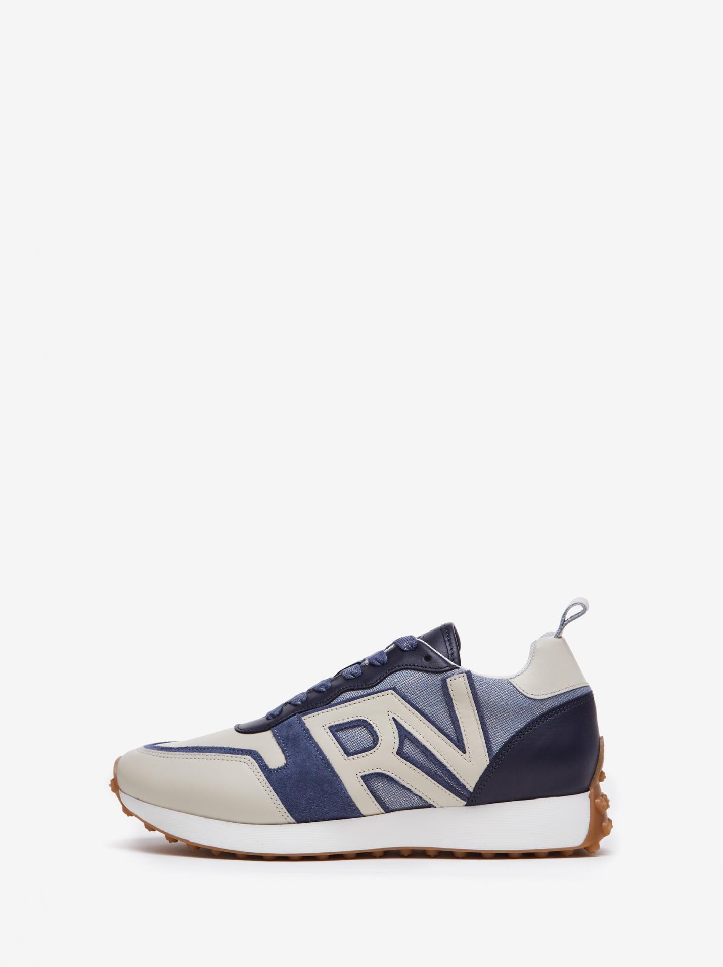 Zapatos Roberto Verino | Deportiva Piel Y Ante Azul Con Lazada Azul Mujer