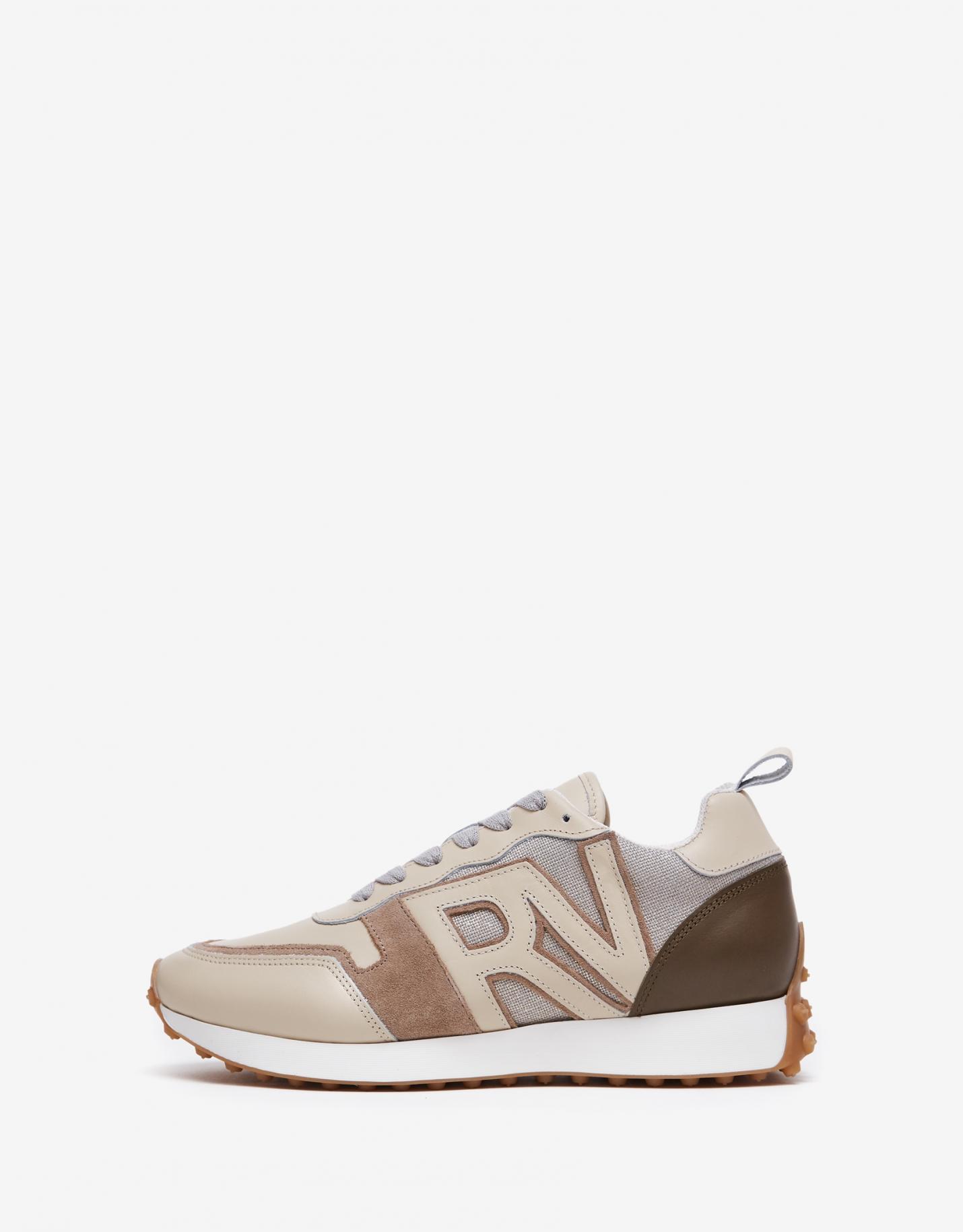 Zapatos Roberto Verino | Deportiva Piel Y Ante Beige Con Lazada Gris Mujer