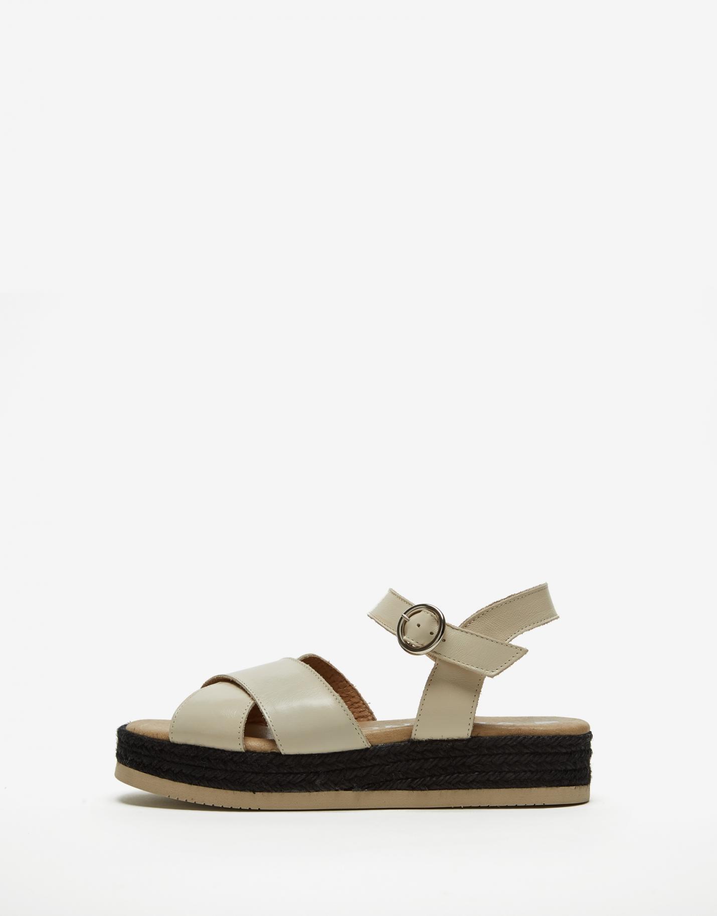 Zapatos Roberto Verino | Sandalia De Plataforma Luka Piel Beige Y Yute Mujer