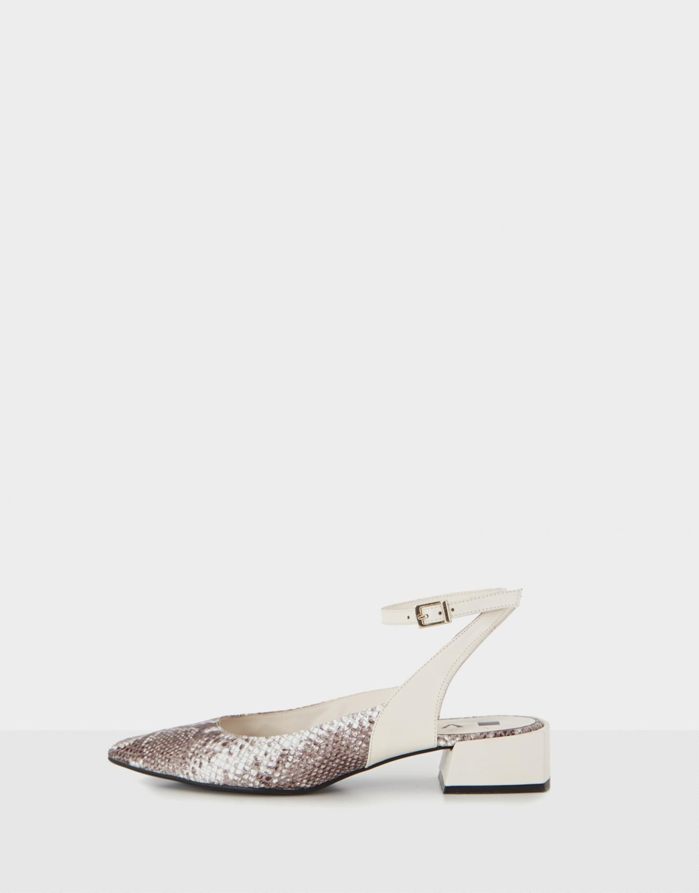 Zapatos Roberto Verino | Zapato Destalonado Piel Beige Y Serpiente Mujer
