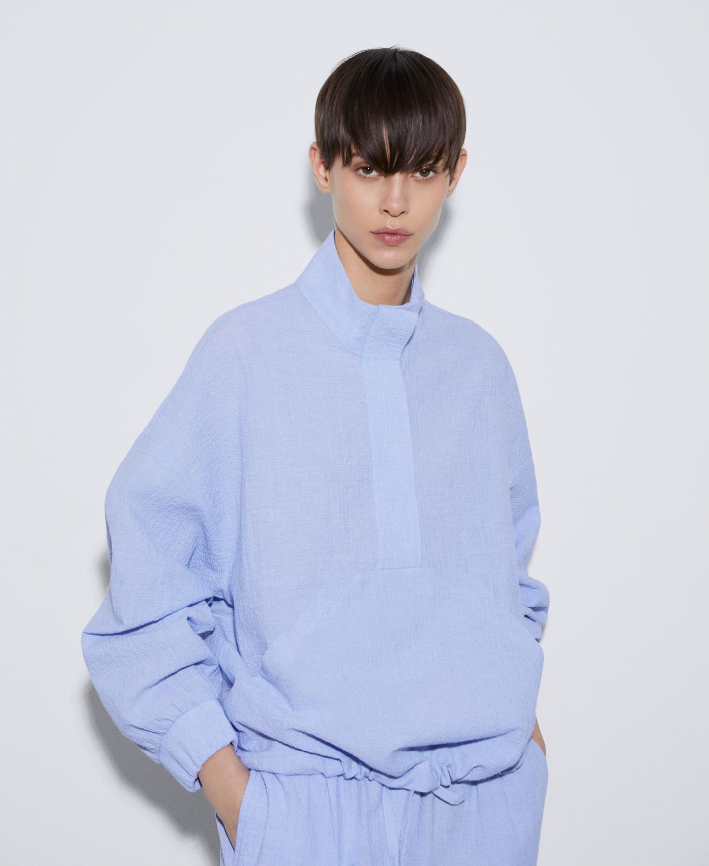 Camisas y tops Adolfo Dominguez | Sudadera seersuker algodón responsable Blanco/Azul Mujer